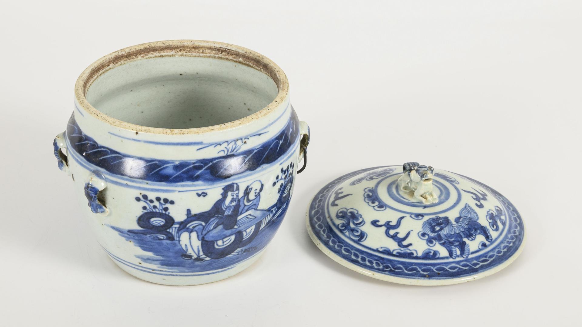 Wandung mit figürlicher Darstellung und vier Ösen. Deckel mit Qilin sowie mit Wolken- und Flammensymbolen.