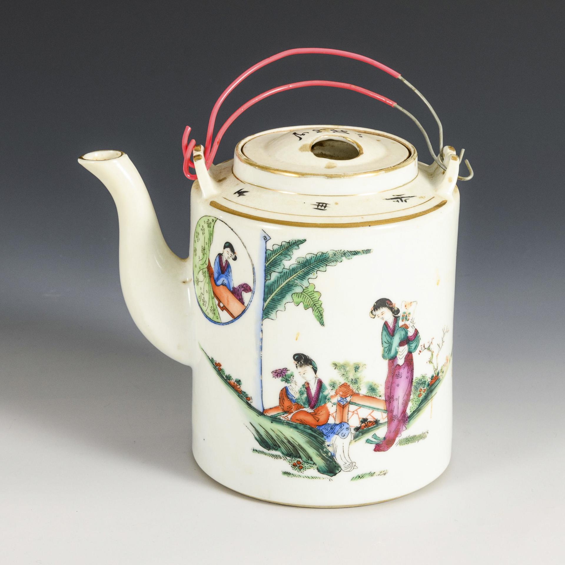Teekanne mit Schriftzeichen.