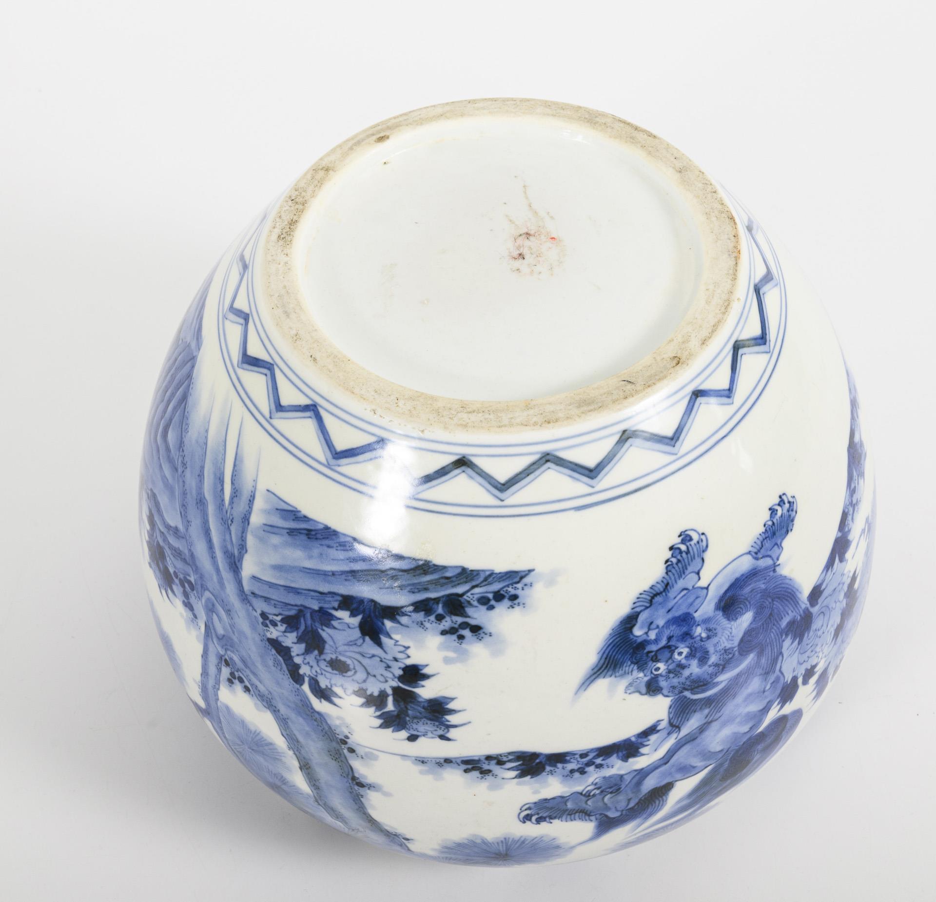 Porzellan mit Unterglasurblaumalerei. H 18 cm, Ø 23,5 cm. 3 kg.