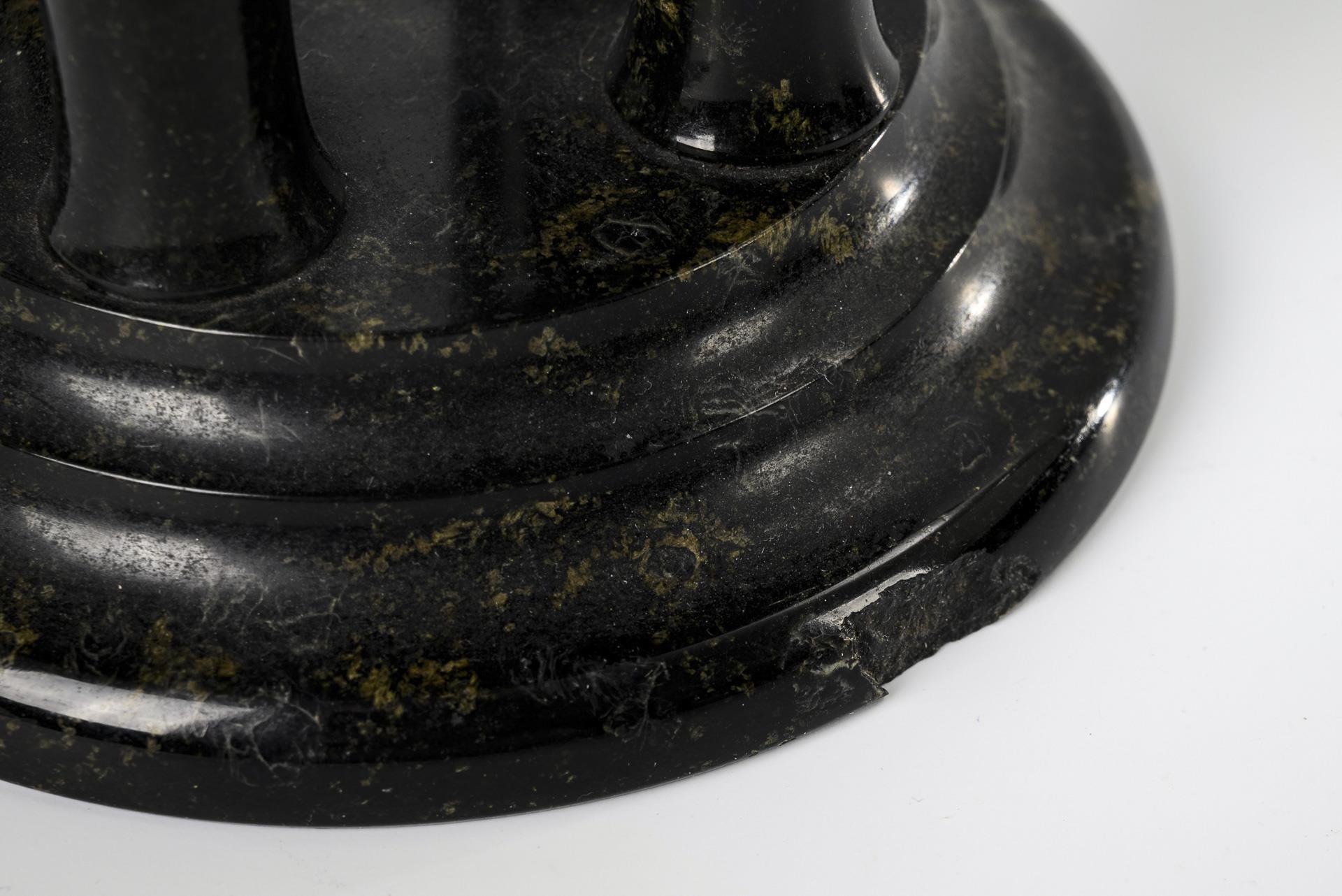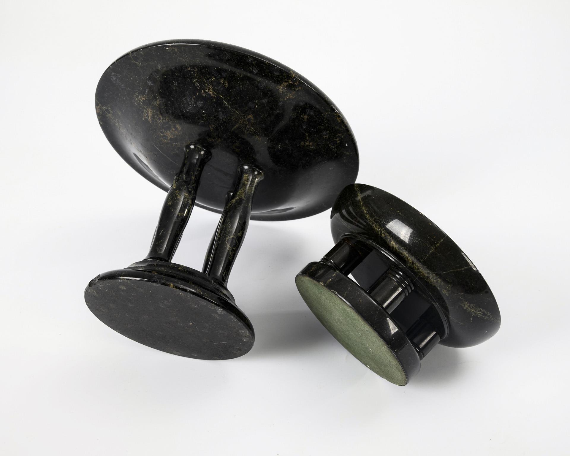 Serpentin-Steinschnitt. H 17 bzw. 7 cm, Ø 1 bzw. 15 cm. Gesamt 2,9 kg.