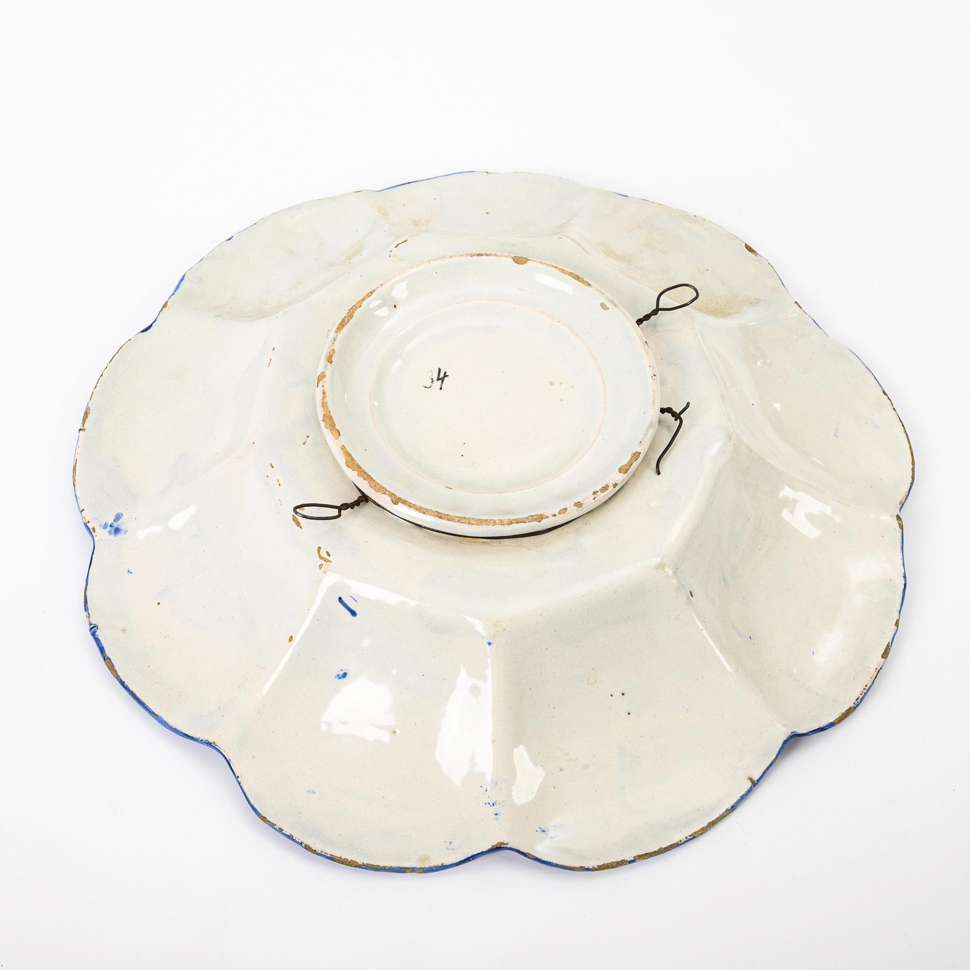 Weiß glasiert, Bemalung in Kobaltblau. Ø 32 cm. 1148 g.