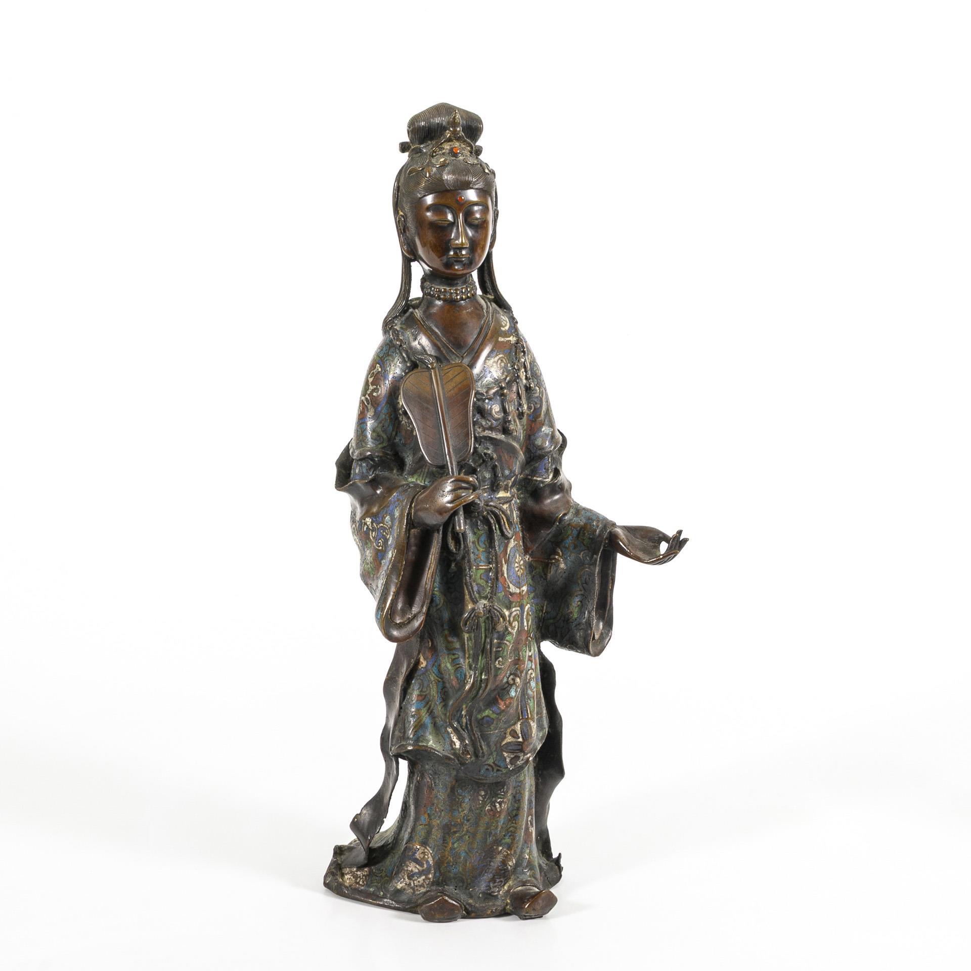 Große Frauenbronze als Champlevé-Arbeit.