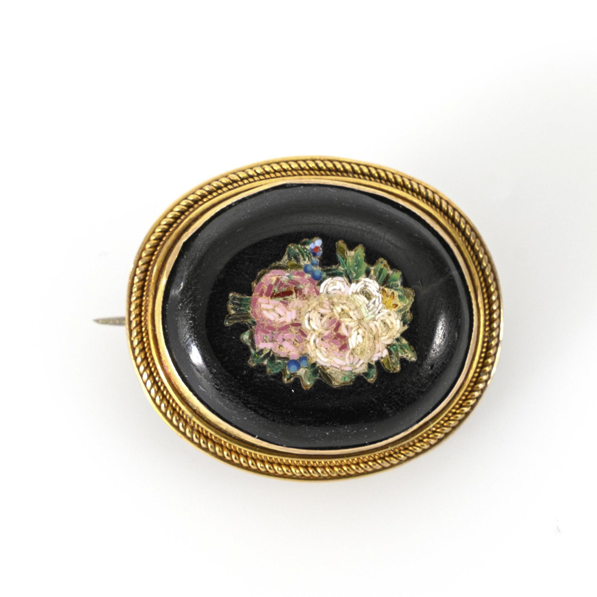 Historische Brosche mit floralem Mikromosaik.
