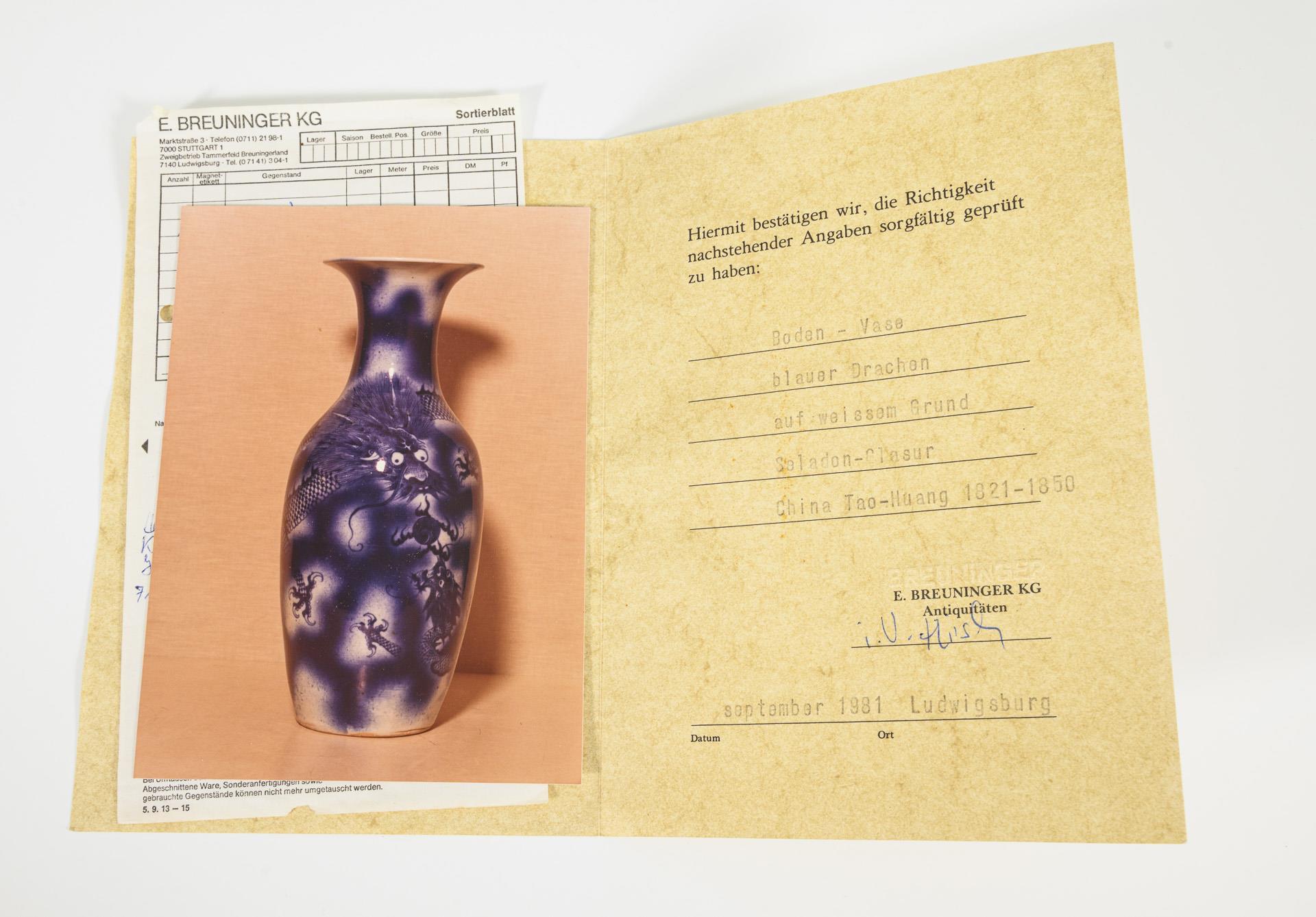 Porzellan mit Unterglasurblaumalerei. H 58 cm. 5,8 kg.