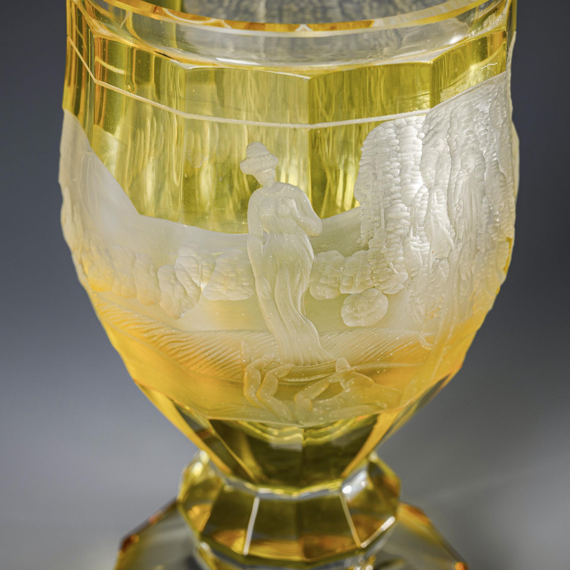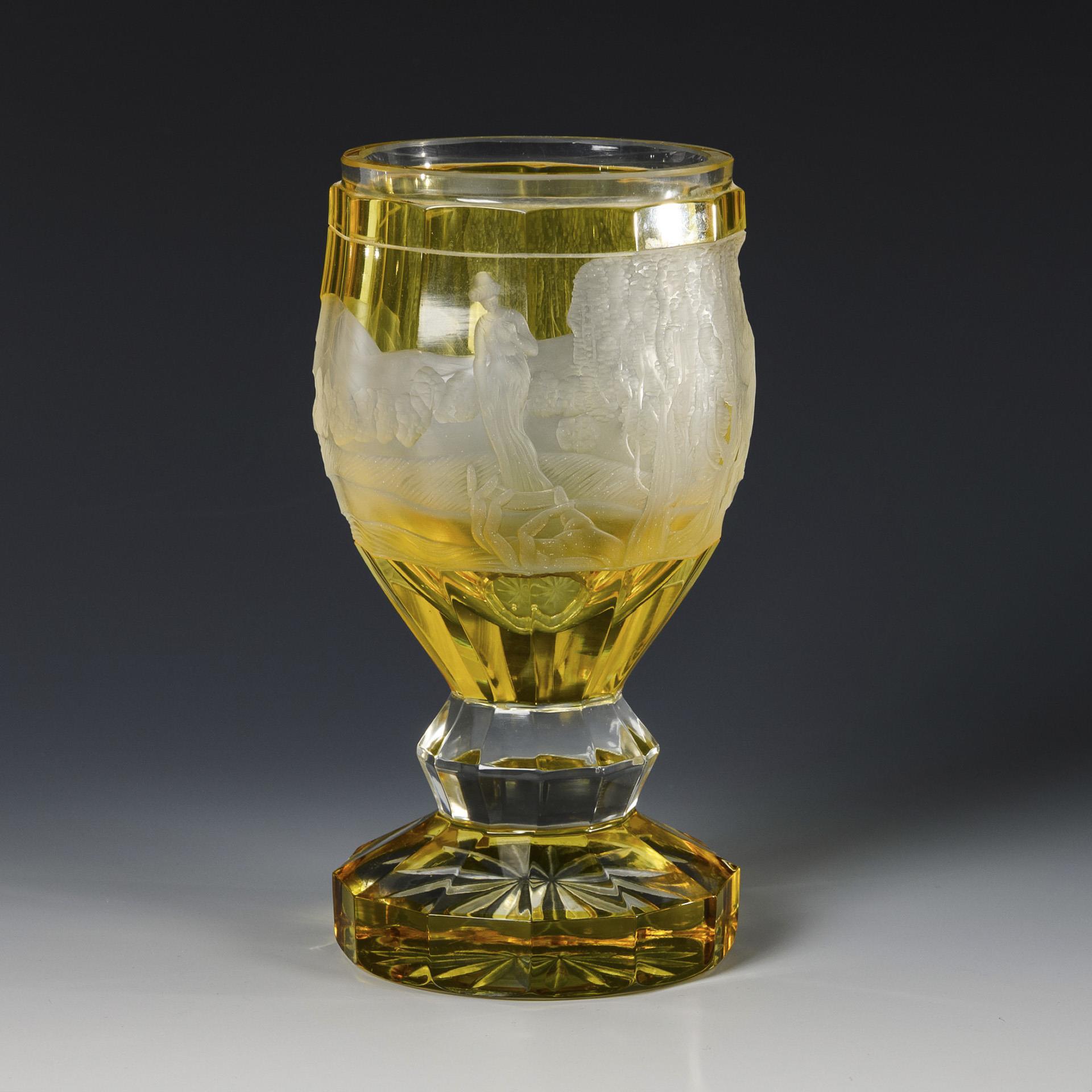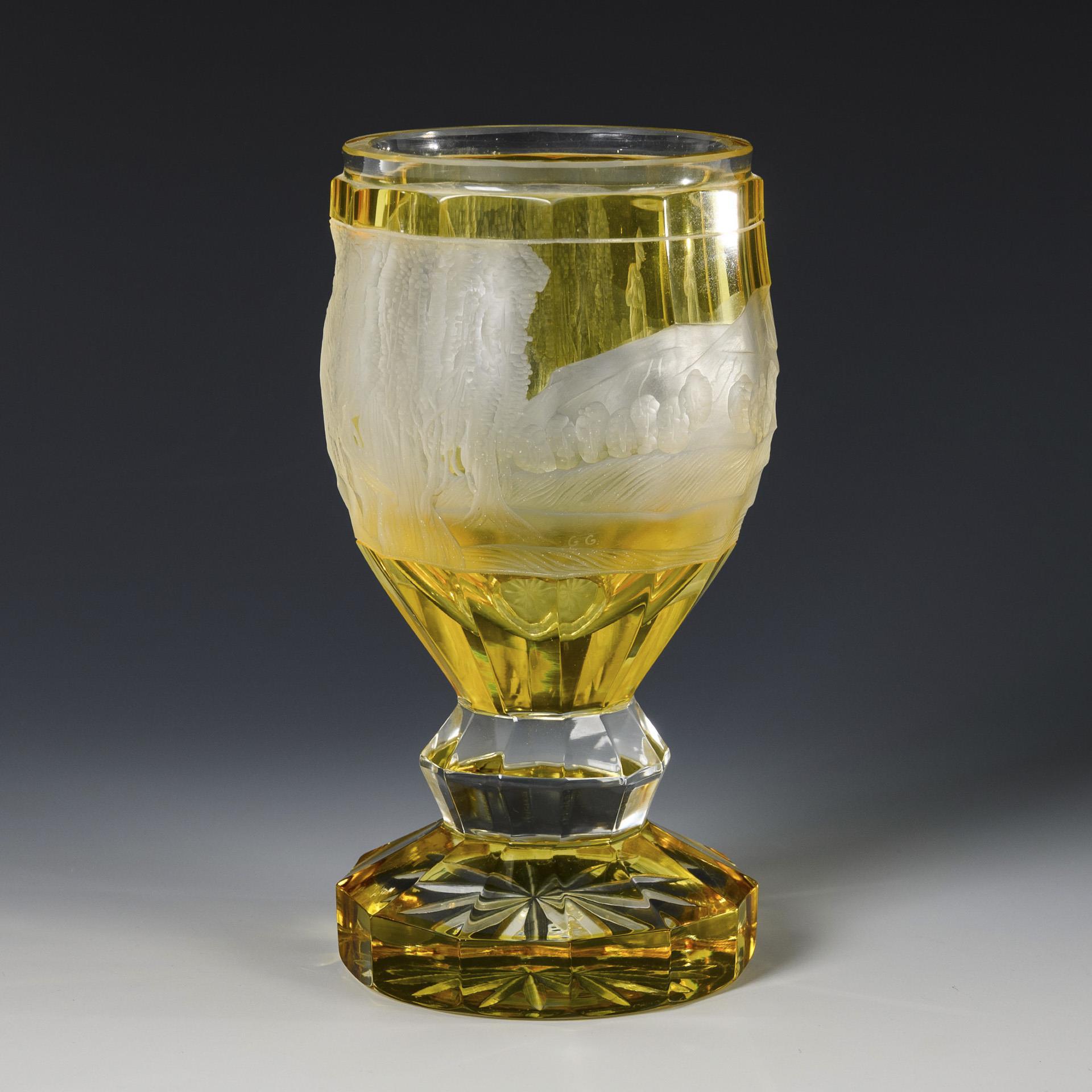 Farbloses, gelb gebeiztes Glas. H 17 cm. 900 g.