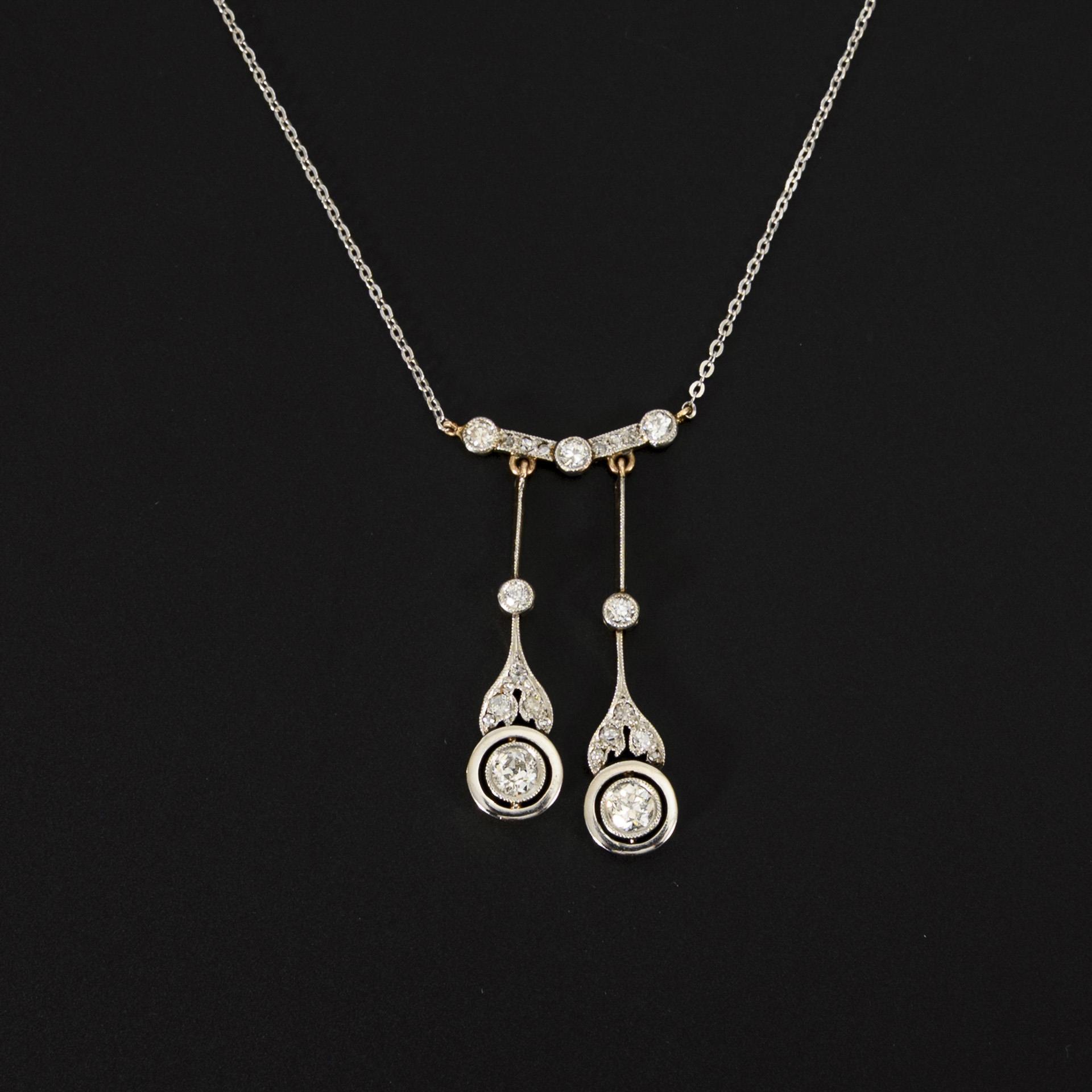 Negligé-Collier mit großen Altschliff-Brillanten.