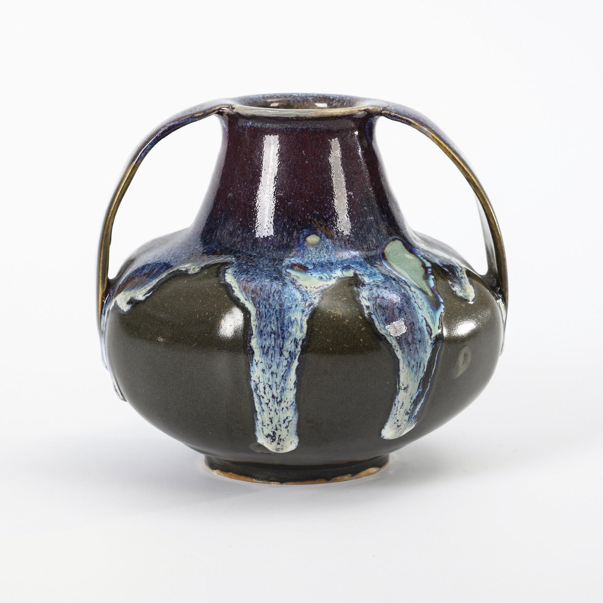 Kleine Jugendstil-Henkelvase mit Laufglasur. Jacob Julius Scharvogel (1854-1938), München.