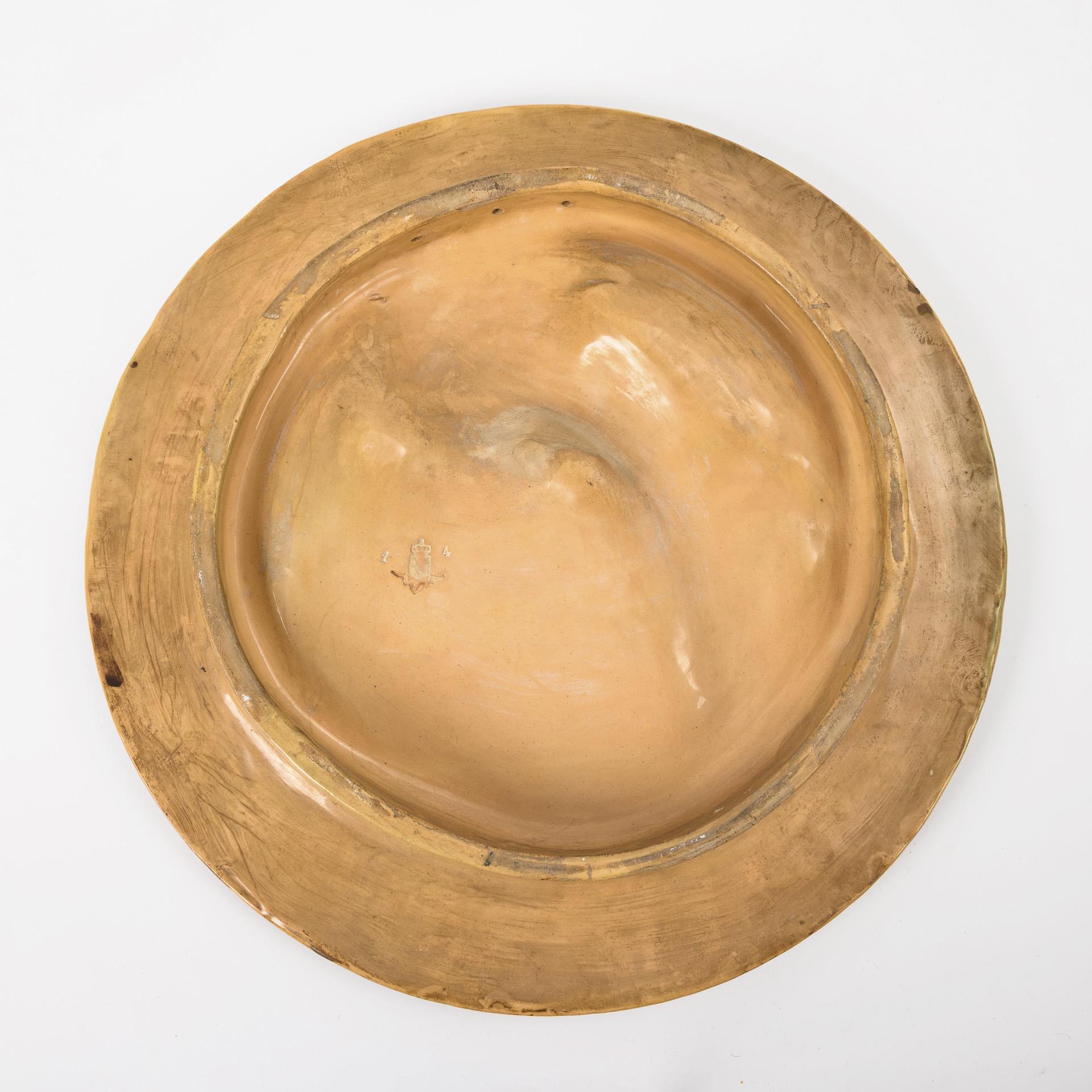 Majolika, farbig staffiert. Ø 39 cm. 2,8 kg.