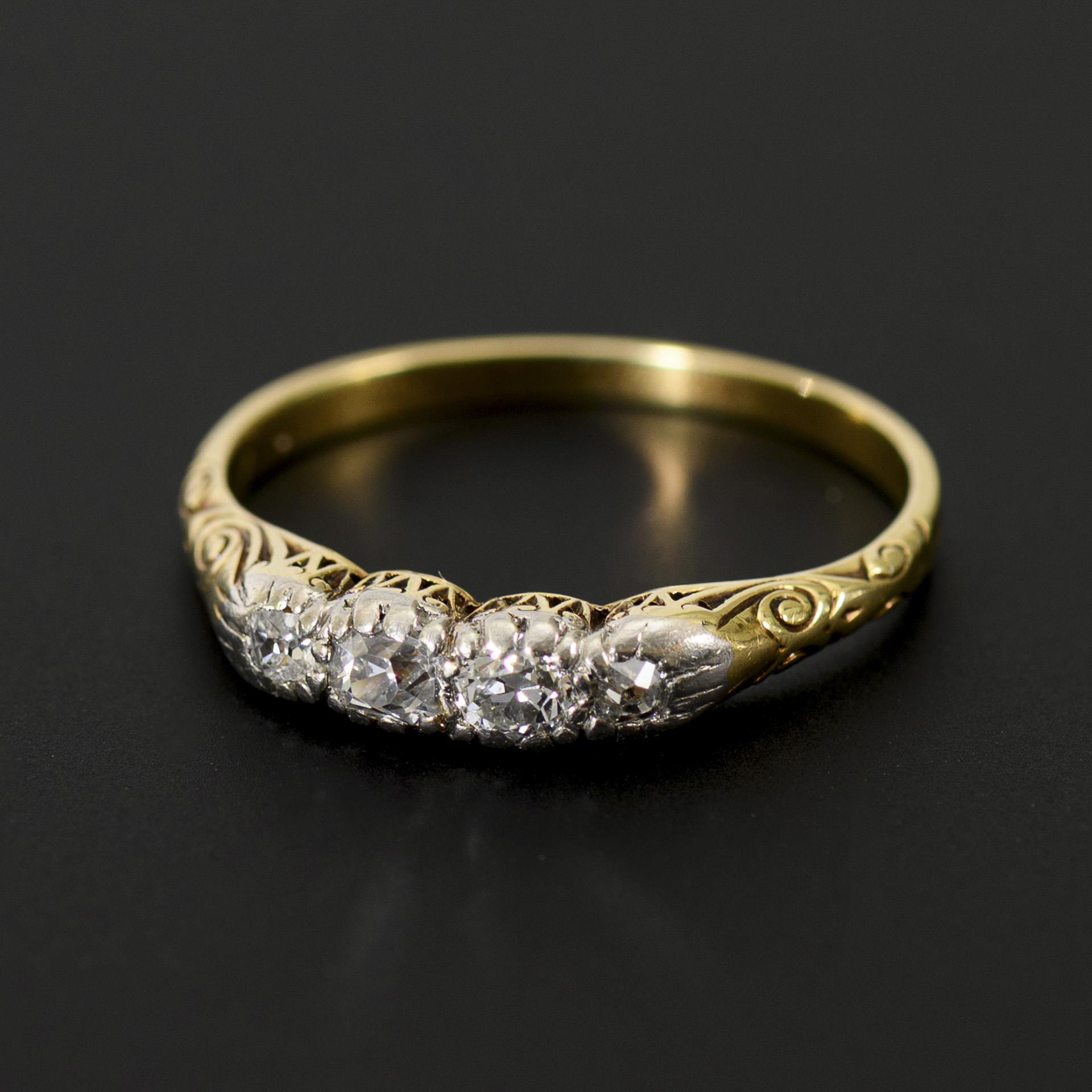 Ring mit 4 Altschliff-Brillanten in verzierter Schiene.