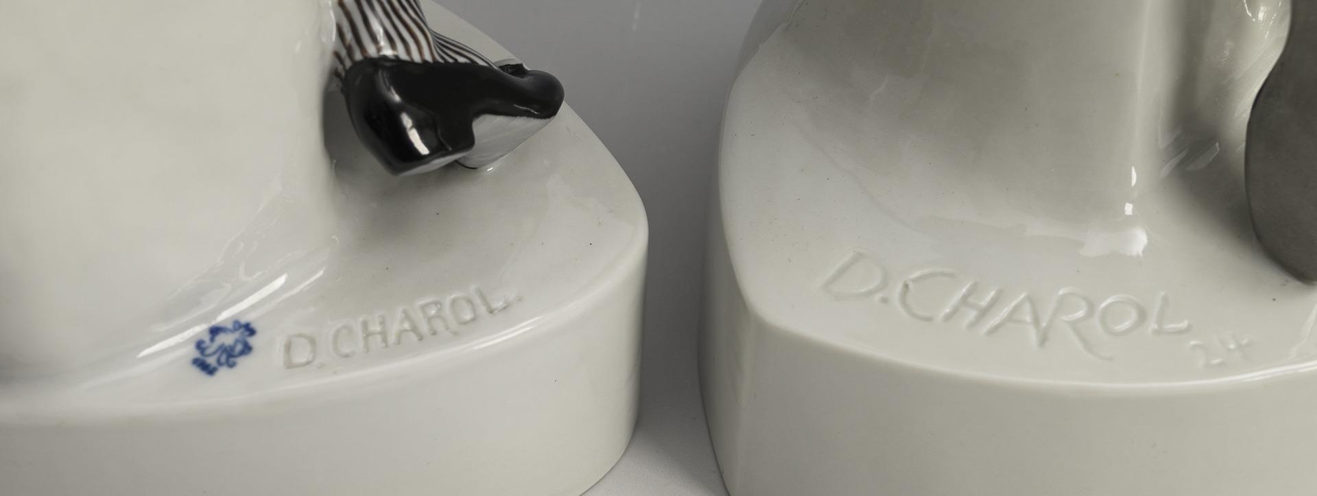 Blaumarke, 2. H. 20. Jh. Bezeichnet. Ohne Modell-Nr.. Beide nach Modellen der Schwarzburger Werkstätten für Porzellankunst, Modell-Nr. U 296 und U 442. CHAROL, Dorothea (1889 Odessa - 1963 London)