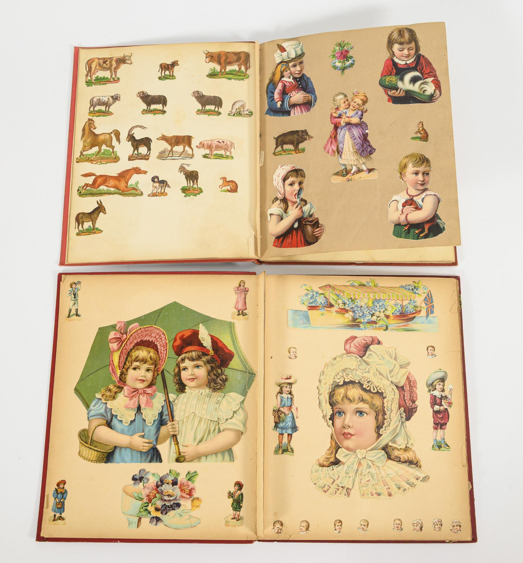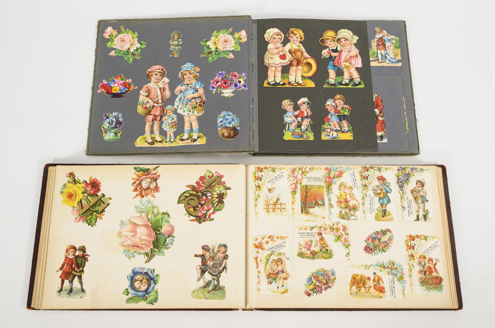 Luxuspapiere/Glanzbilder, zumeist eingeklebte, geprägte Farblithografien. Album maximal 25 x 34 cm. 4,2 kg.