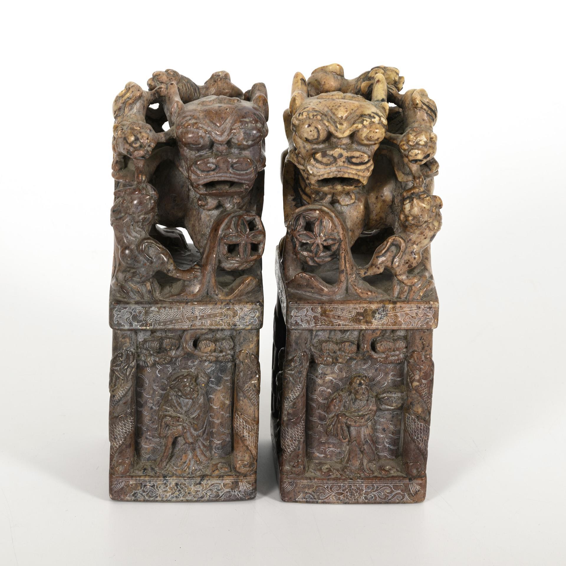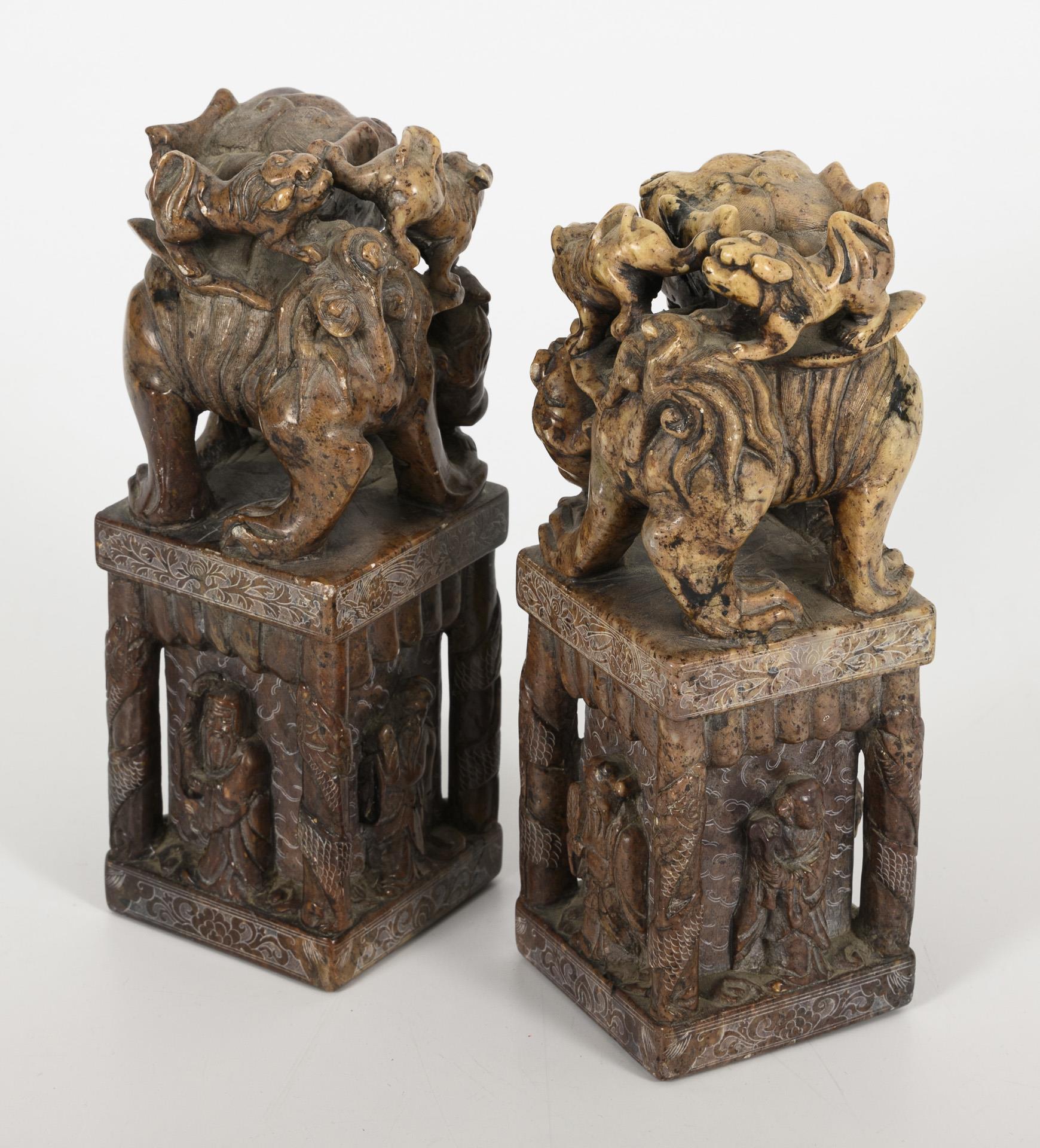 Specksteinschnitzerei. 21 x 7,5 x 7,5 cm. Zusammen 4,6 kg.