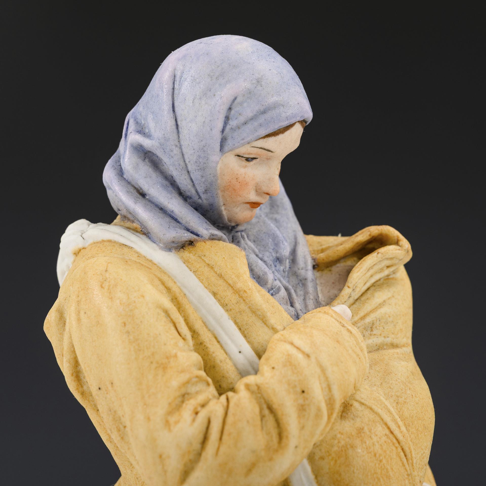 Auf einem Natursockel stehende russische Mutter mit Säugling im Arm.