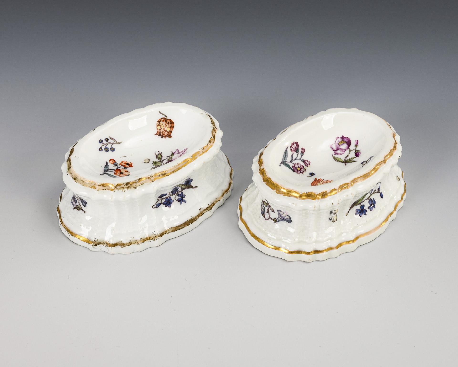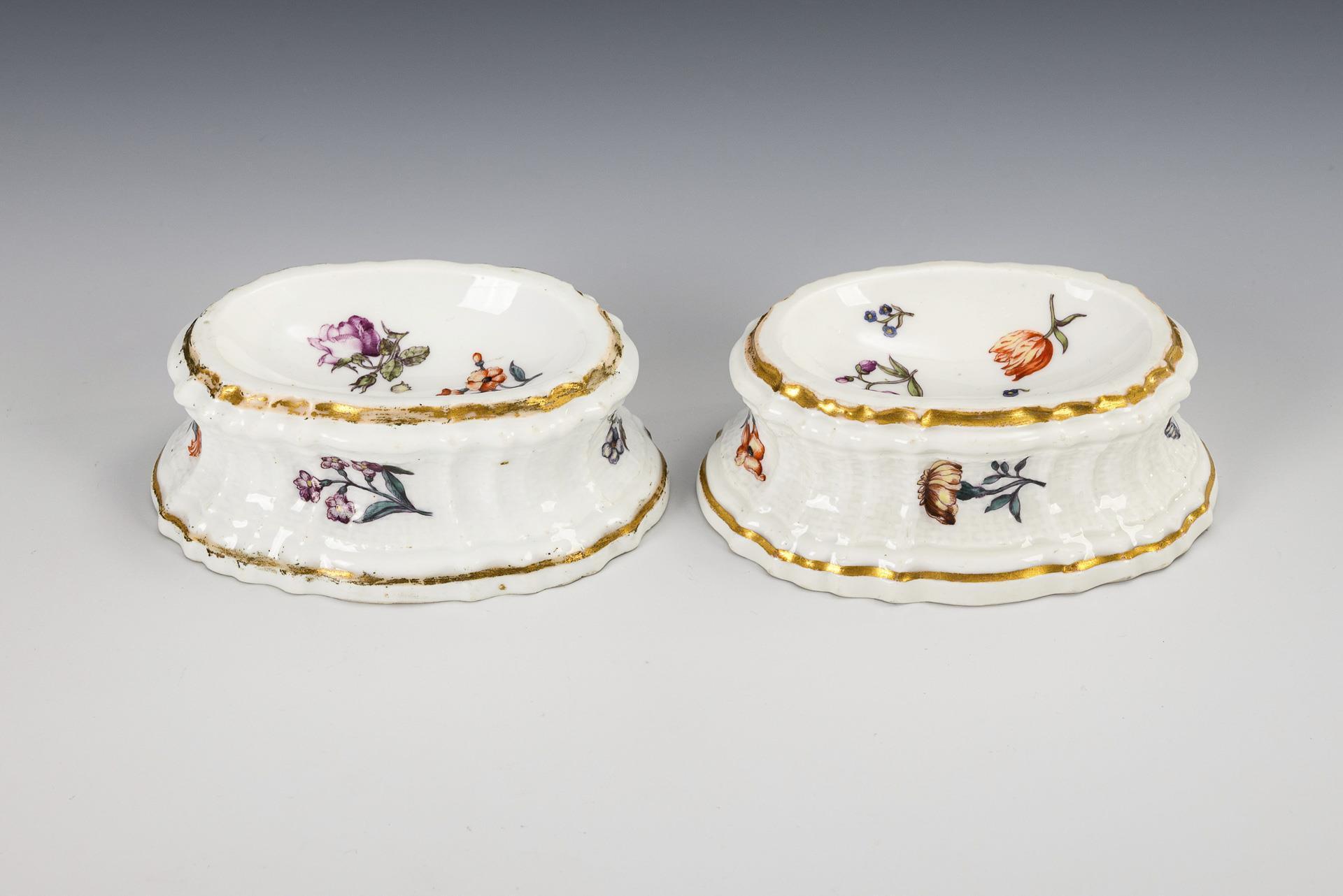 2 barocke Salieren mit Holzschnittblumen. Meissen.