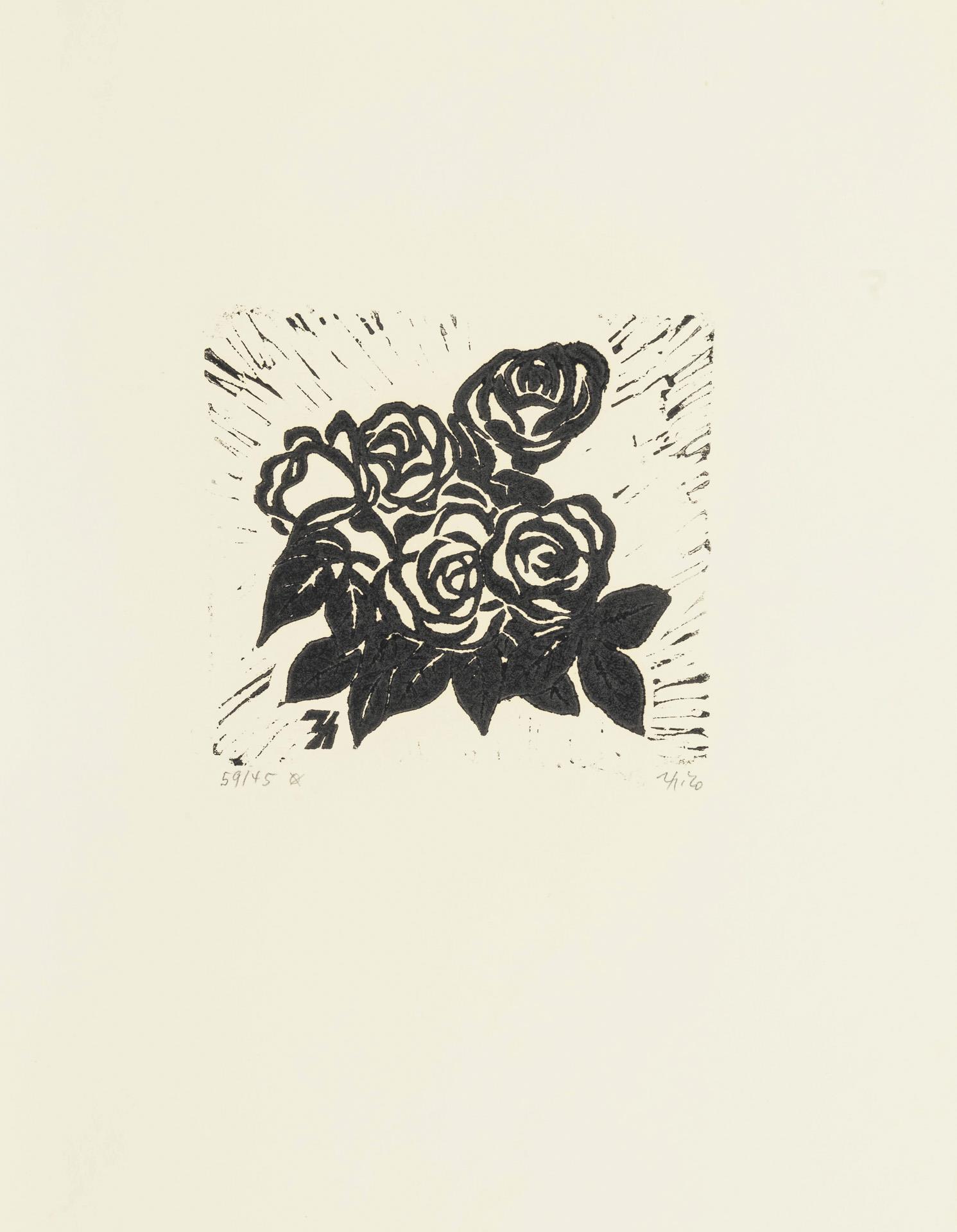 Floral abstrahierte Drucke mit verschiedensten Motiven, u.a. Neujahres-Grußkarten, Rosen. Ränder teils etwas geknittert und/oder abgerissen.