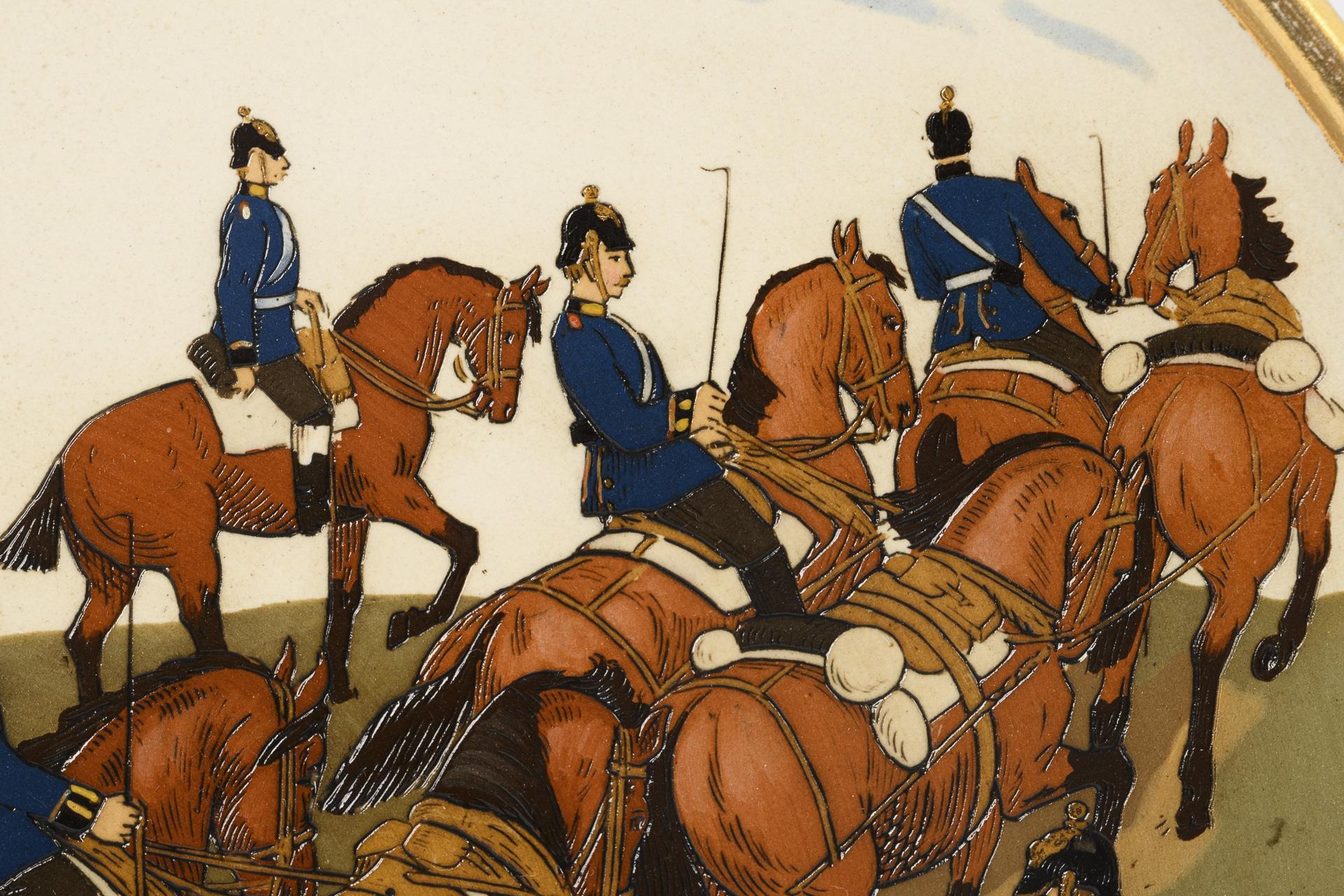 Jugendstil-Wandteller mit Artillerietruppe. Villeroy & Boch.