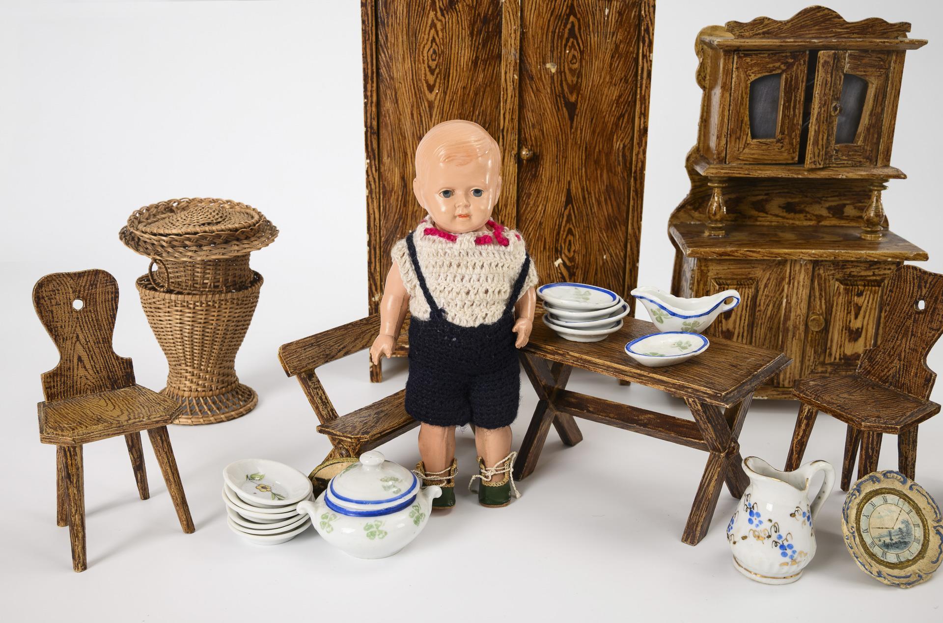 Sie befinden sich hier: Startseite Kategorien Spielzeug Konvolut Möbel mit Furniermalerei, Puppenjunge und etwas Zubehör