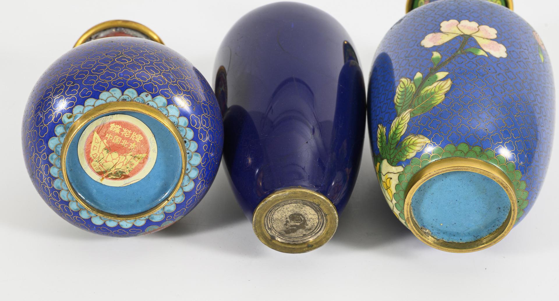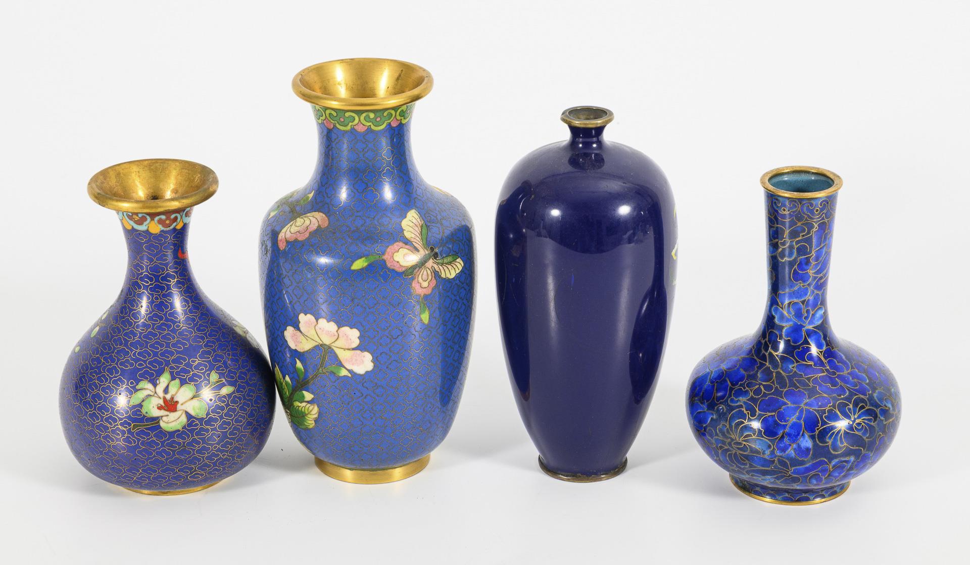 4 kleine blaue Cloisonné-Vasen.