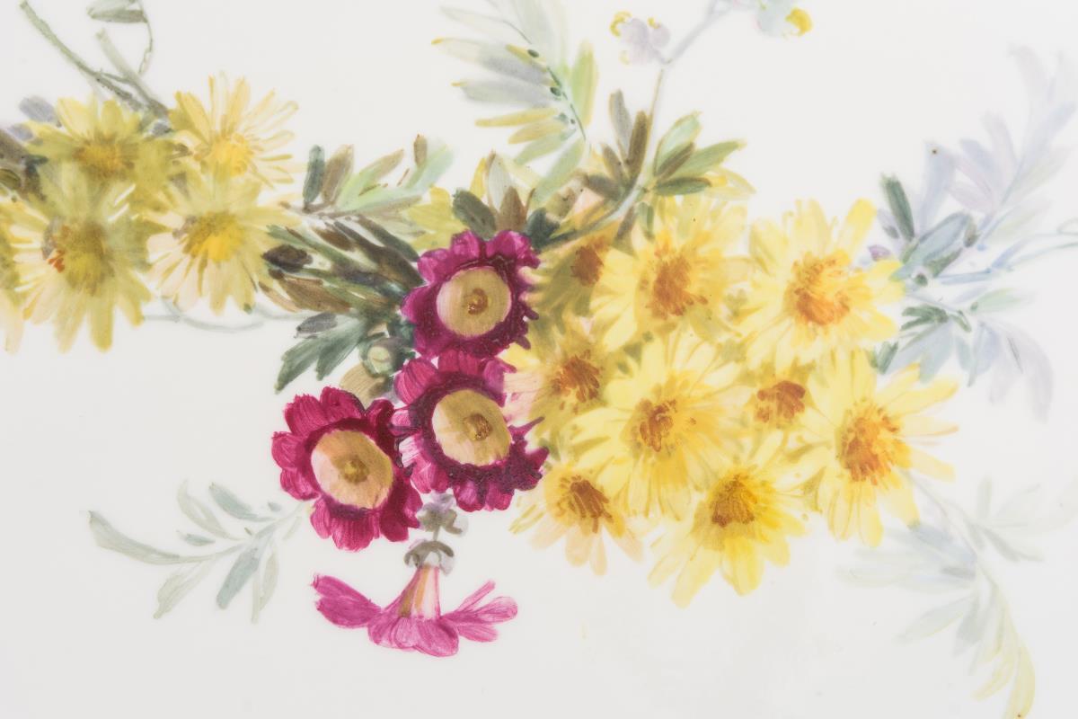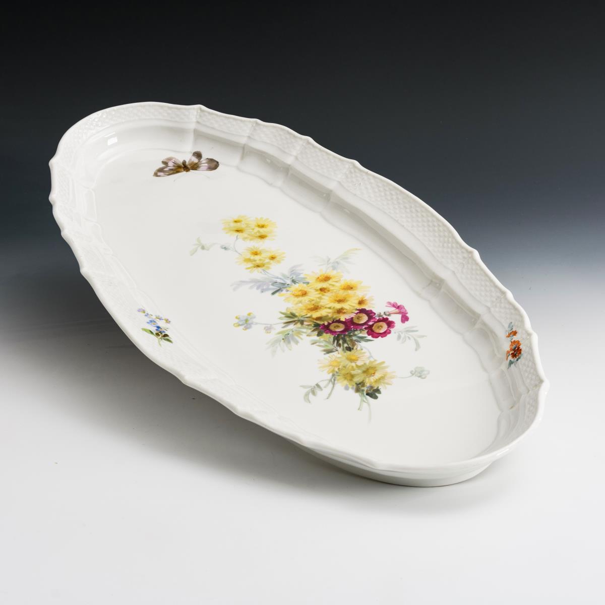 Feine, polychrome Blumen- und Insektenmalerei. L 55 cm.