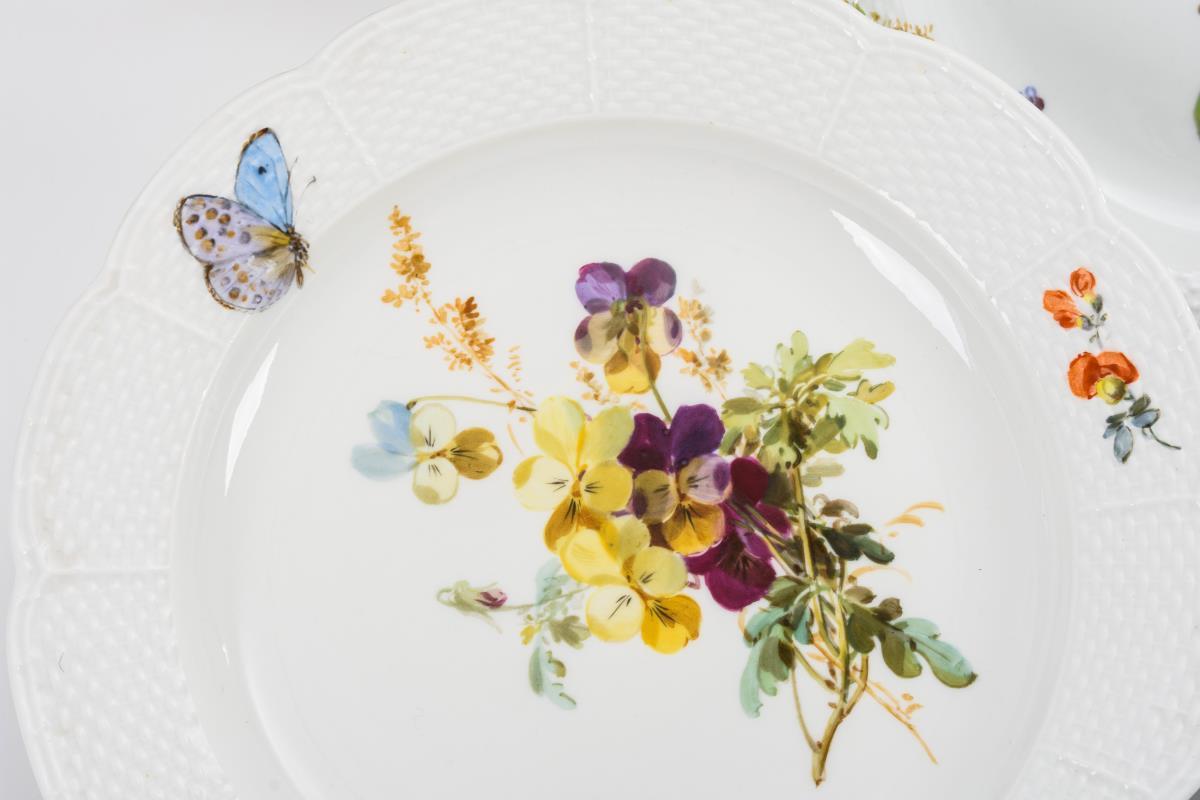 6 Kuchenteller mit Blumen- und Insektenmalerei. Meissen.