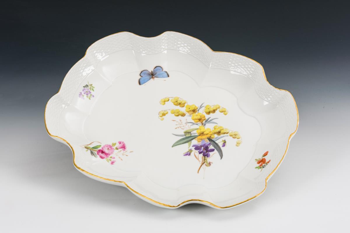 Platte mit Blumen- und Insektenmalerei. Meissen.