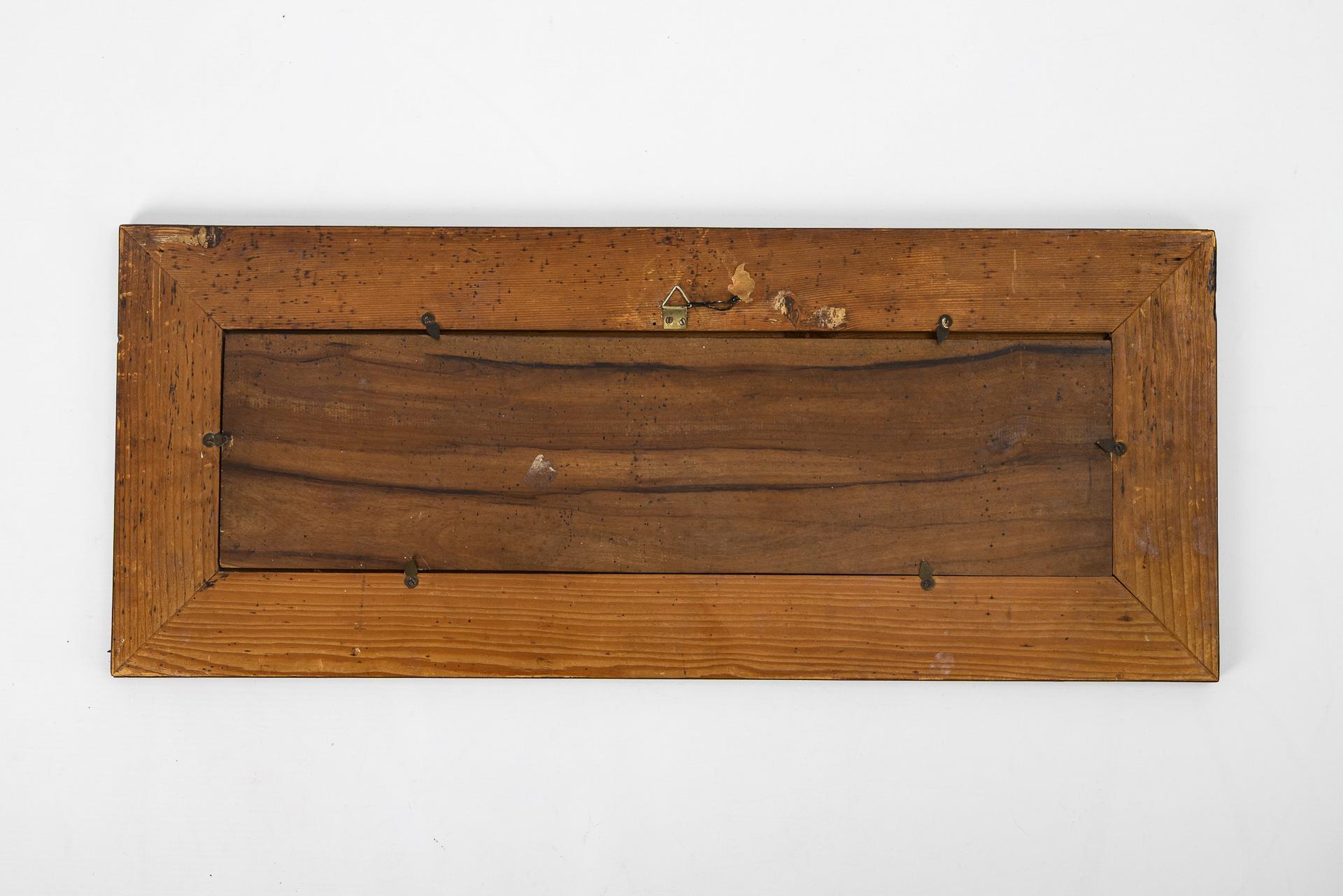 "Intarsienmalerei" verschiedener Hölzer teils bemalt, teils ebonisiert. 22 x 53 cm. 0,7 kg.