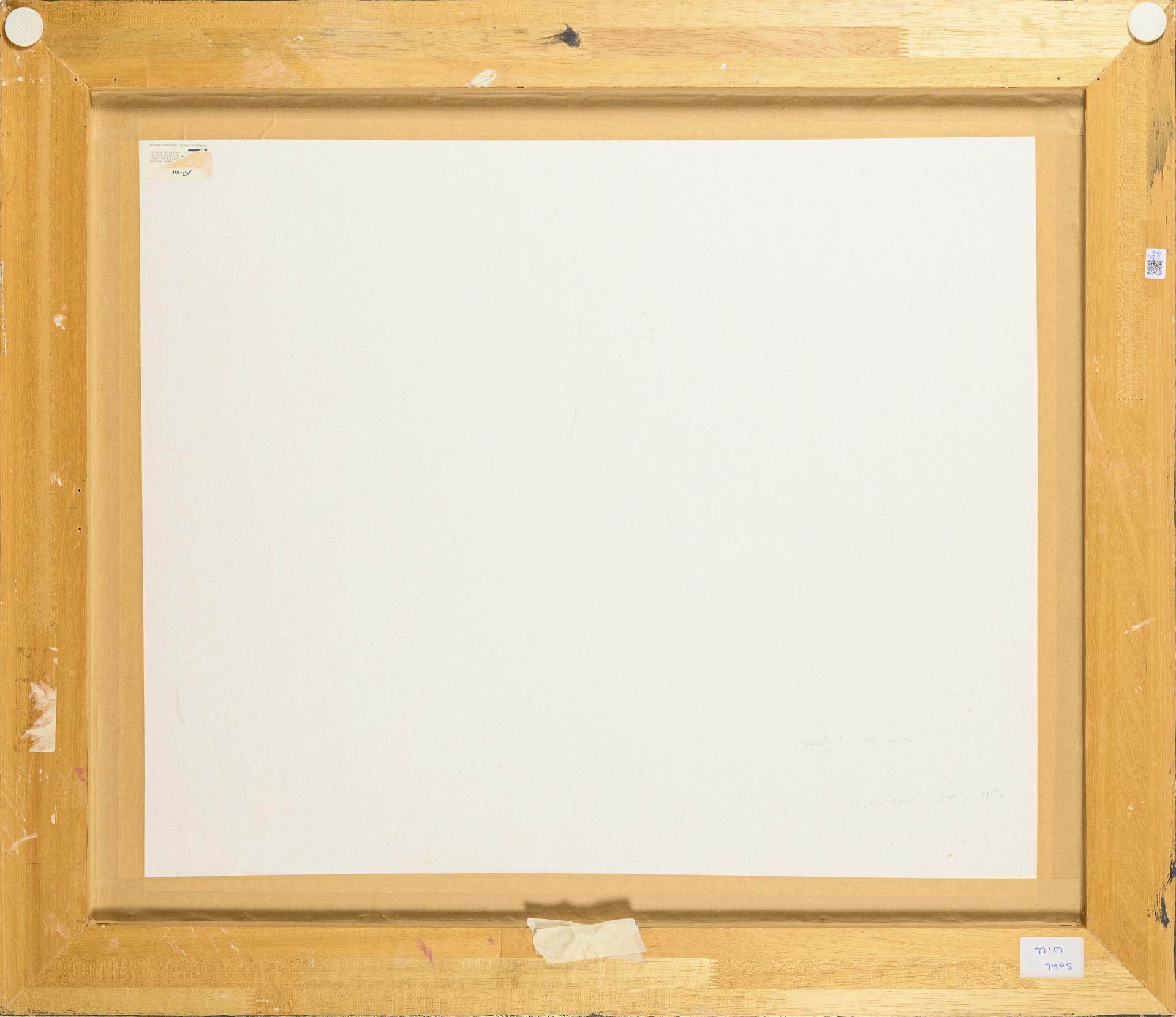 Passepartoutausschnitt 47,5 x 62 cm. Gerahmt & hinter Glas : 86,5 x 100 cm (schwarz-silberner Rahmen); 7 kg.