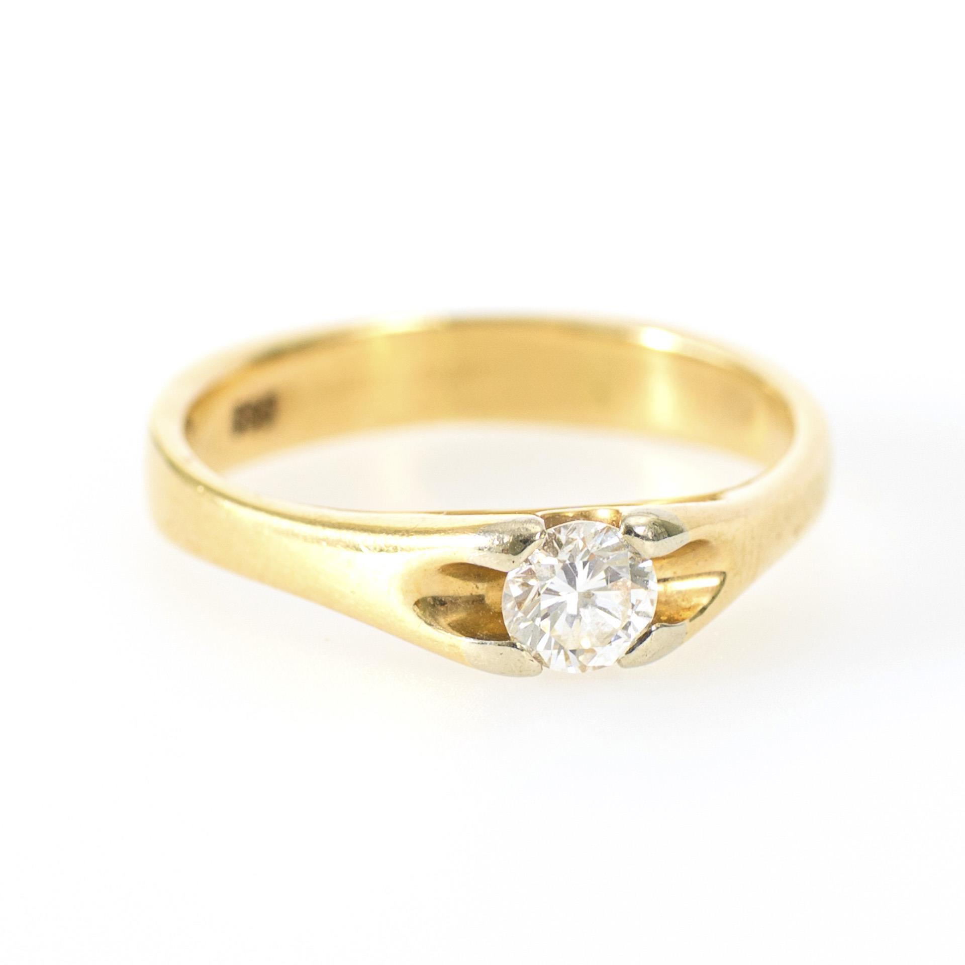 Gelbgold 585 gestempelt. Ringgröße 53,5; Durchmesser des Brillanten (in der Fassung gemessen) 0,5 cm. 4,0 g.