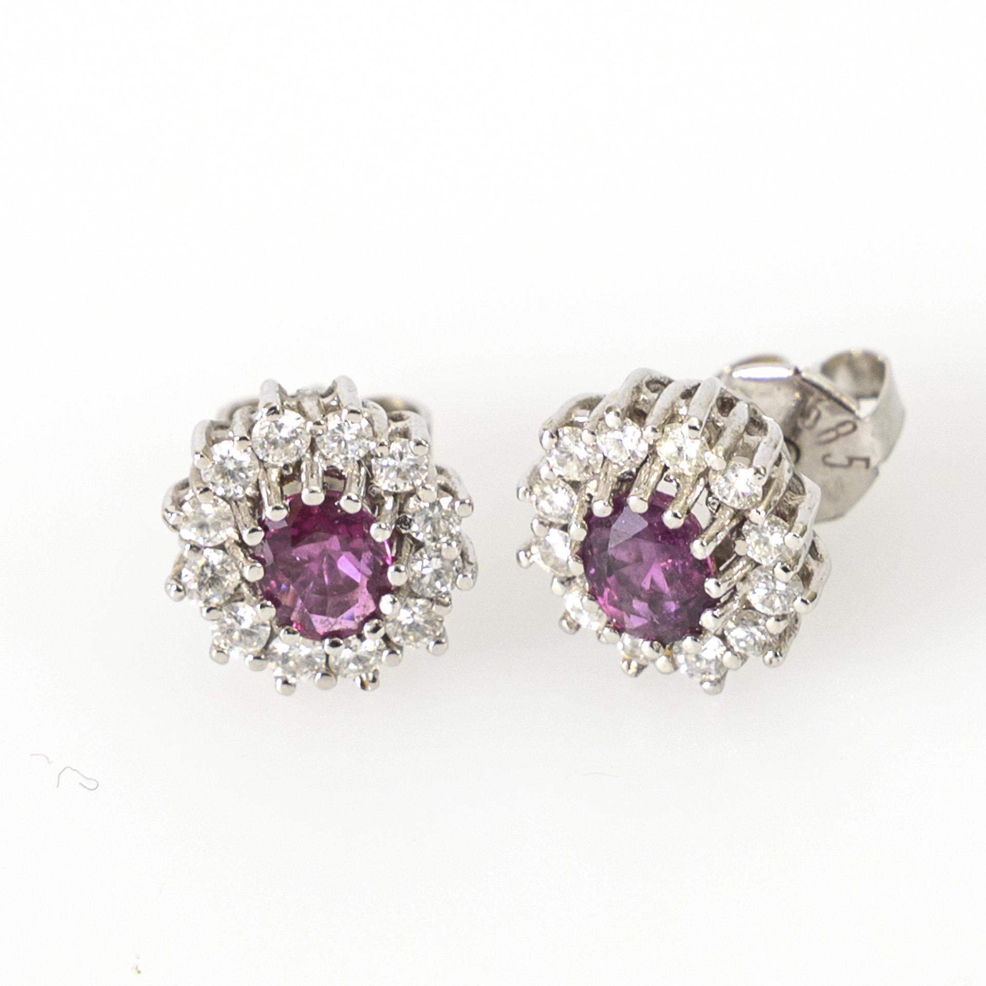 Sie befinden sich hier: Startseite Kategorien Schmuck Ohrstecker in Entourage-Gestaltung mit Brillanten und pinkem Farbstein
