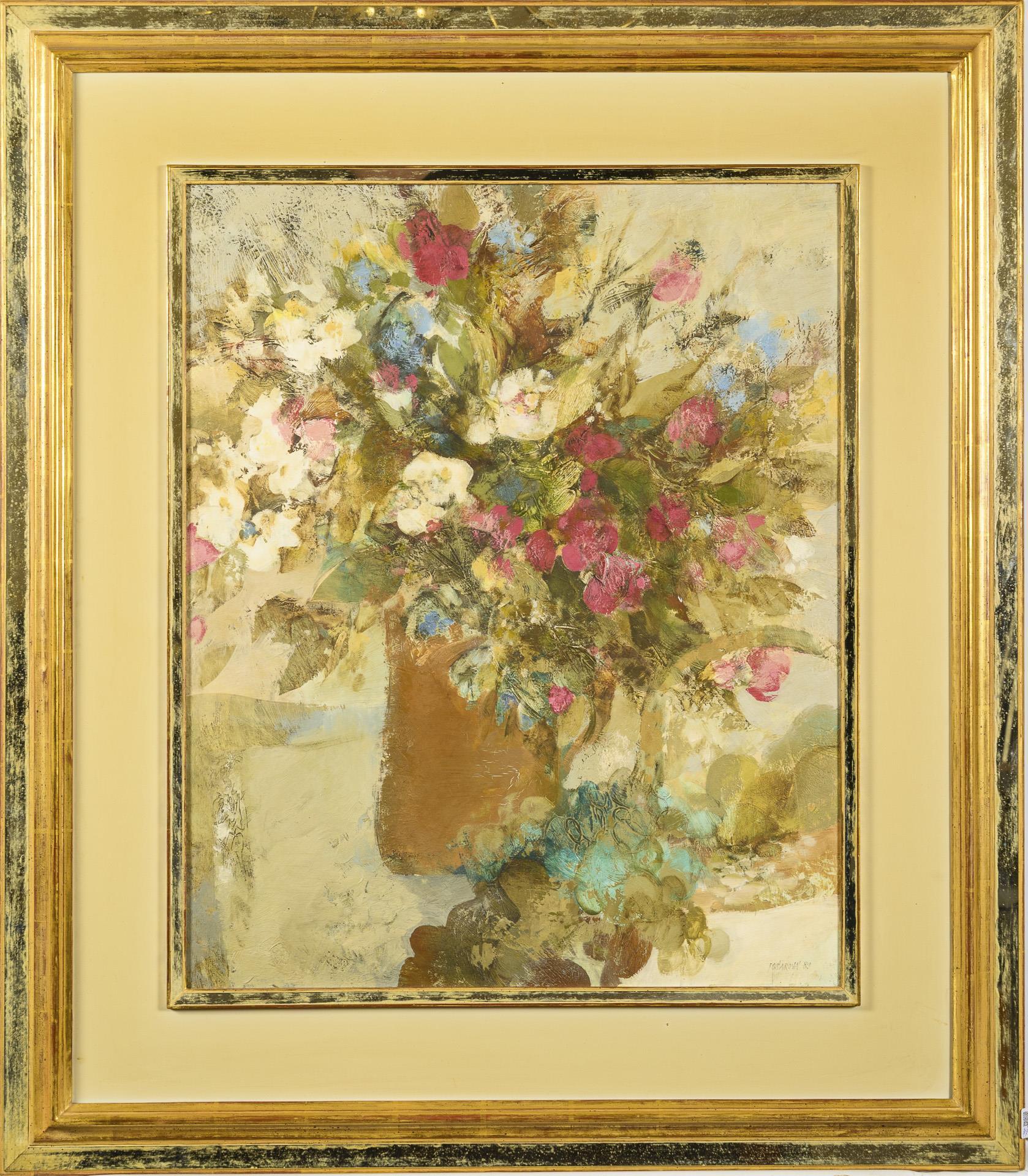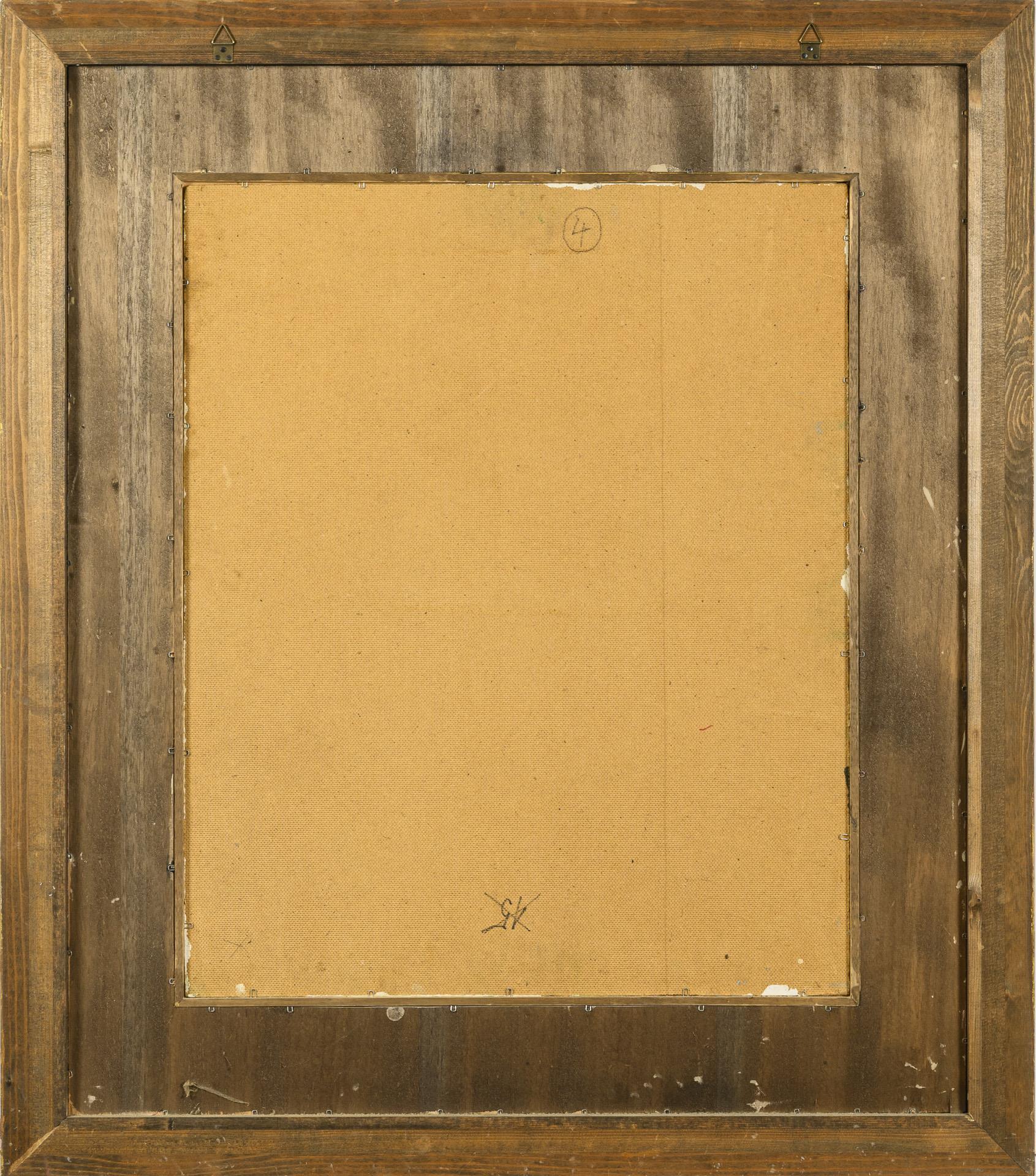 69 x 56,5 cm. Gerahmt : 100 x 87,5 cm (beige-goldener, teils spiegelnder Rahmen); 5 kg.