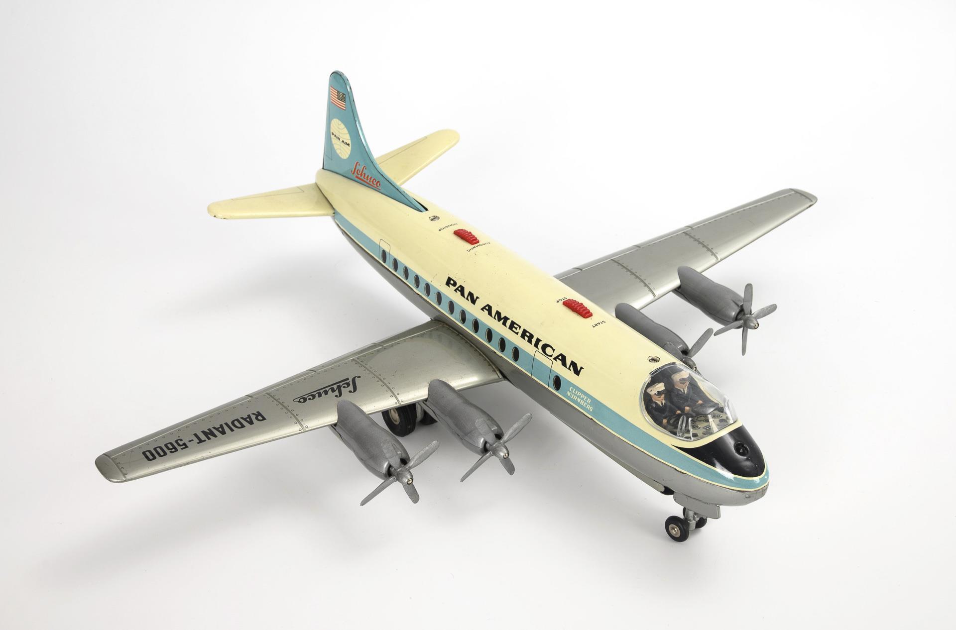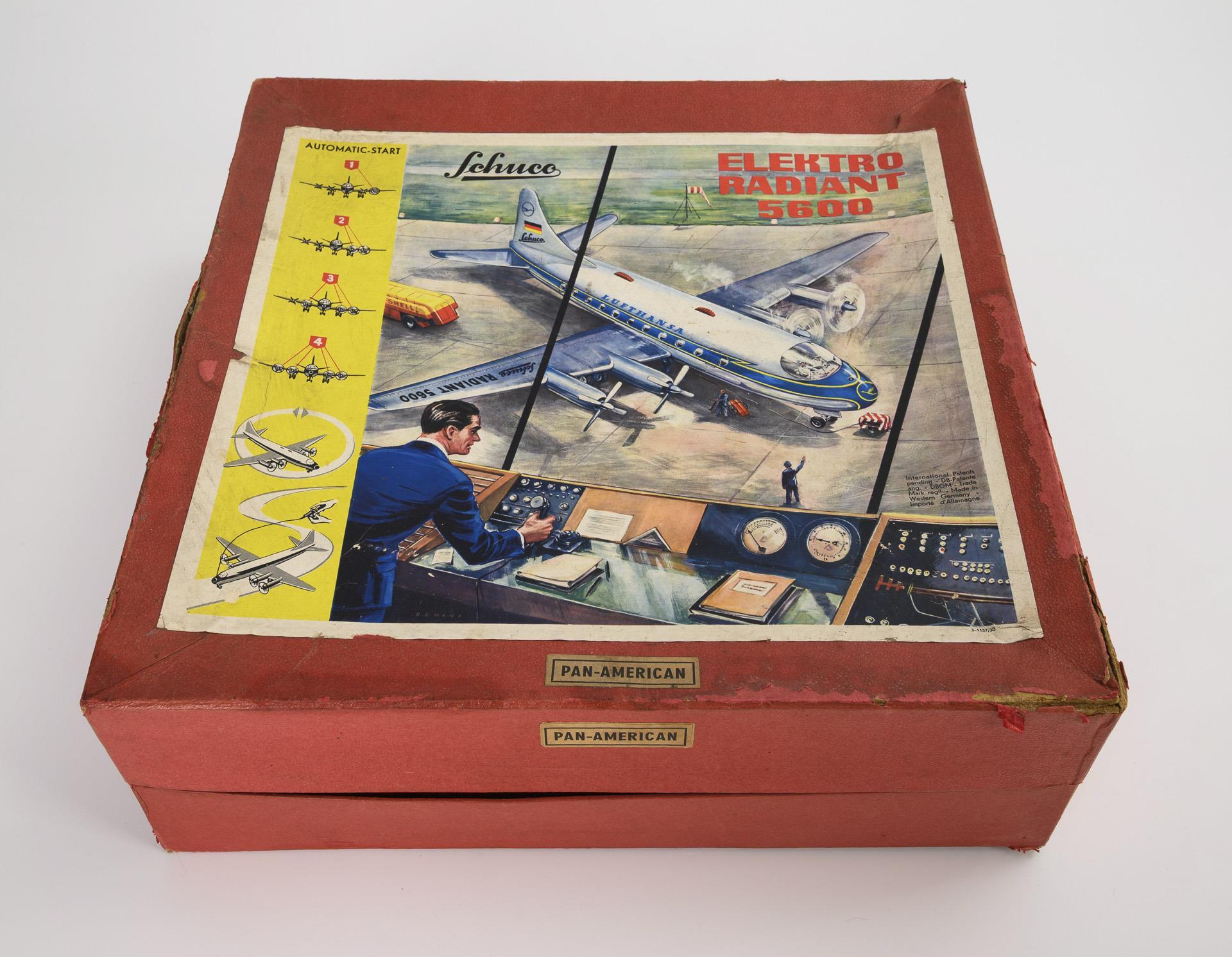 Große Pan American Maschine, für Batteriebetrieb. Mit Anleitung und Originalkarton. Etwas bespielt, Funktion nicht geprüft. Karton mit Defekten.