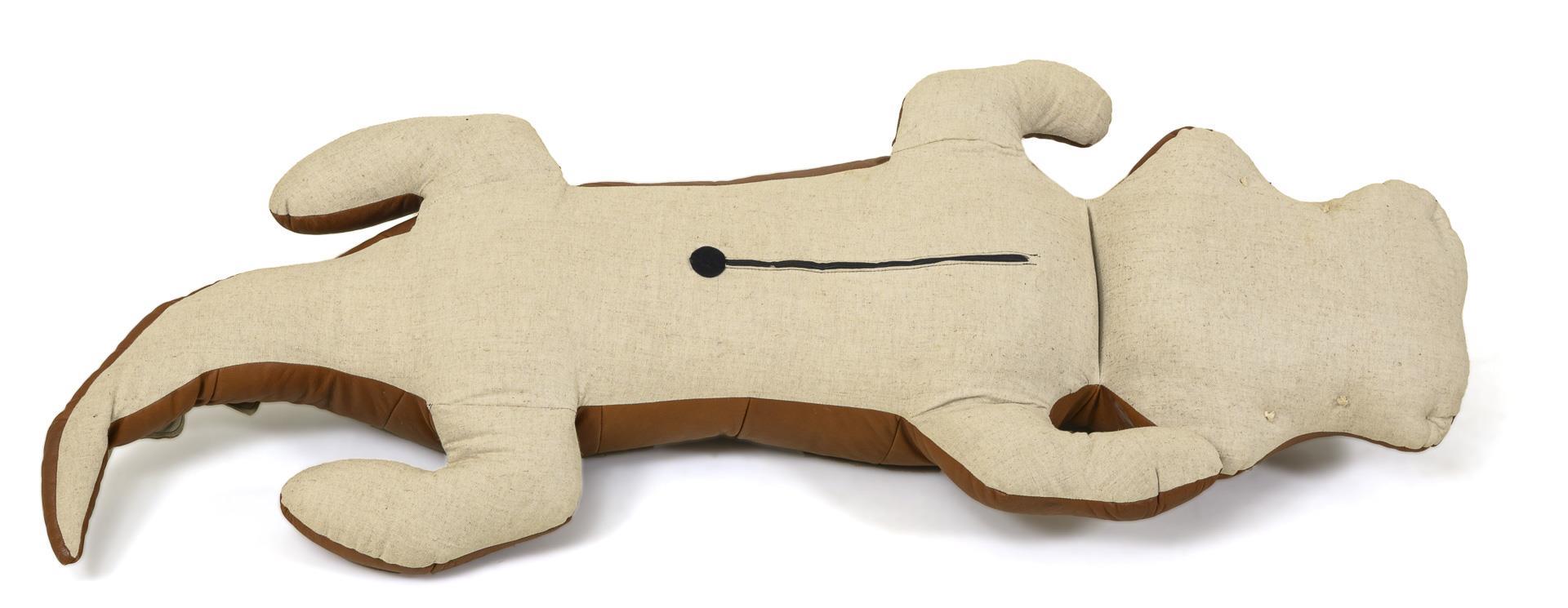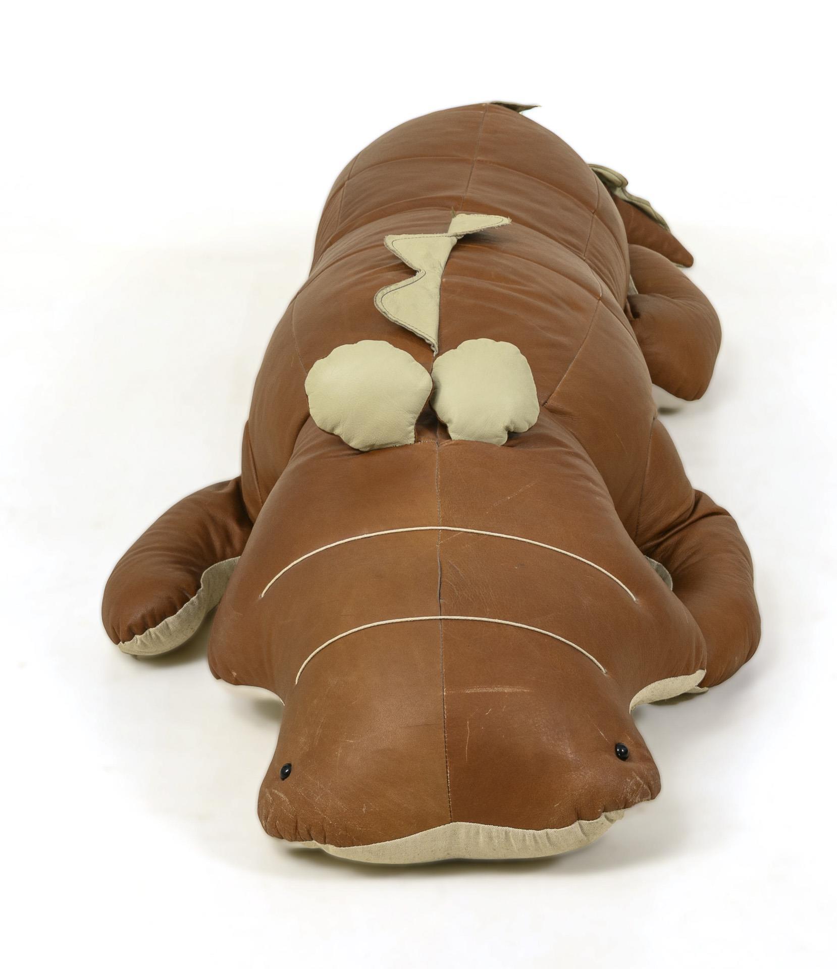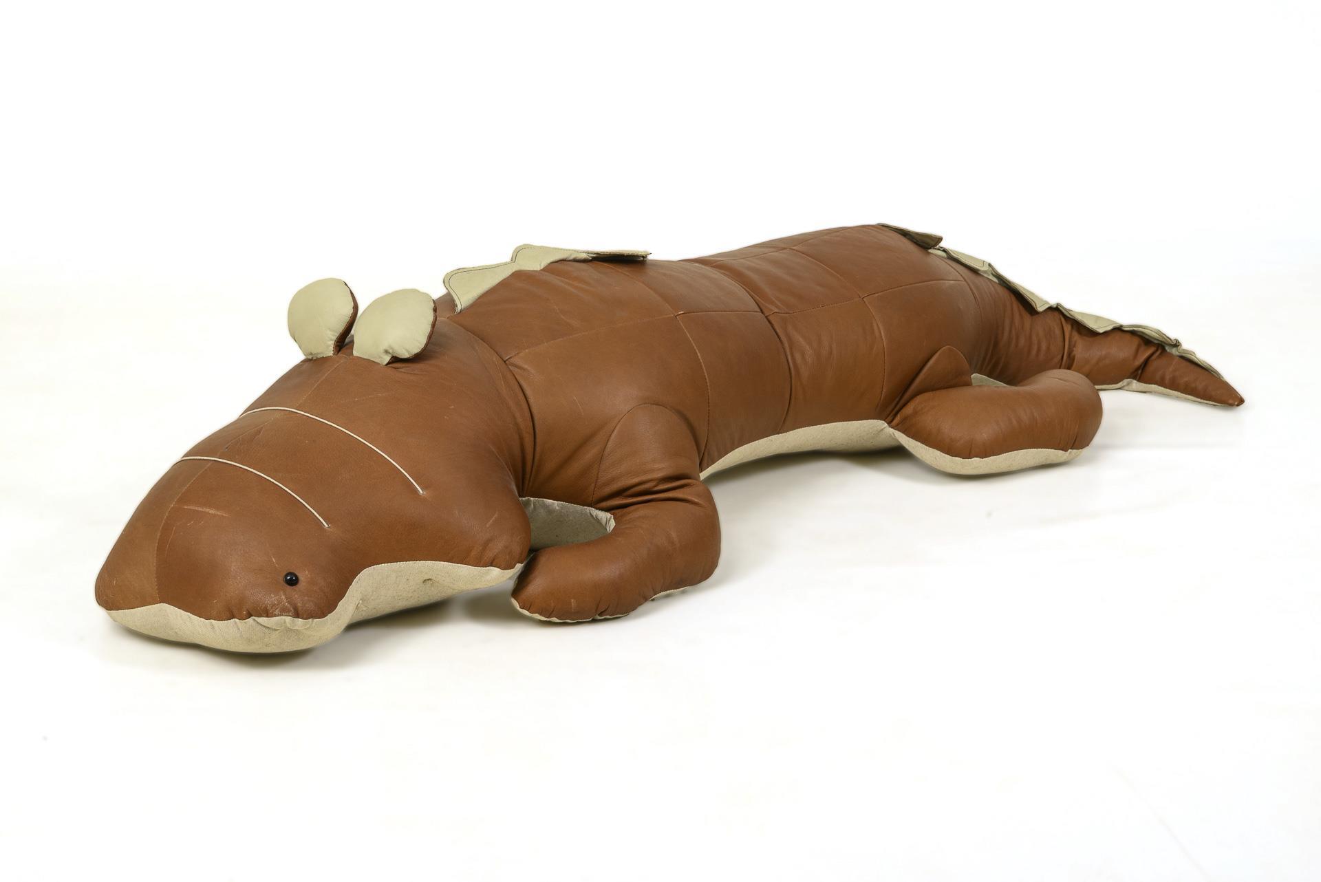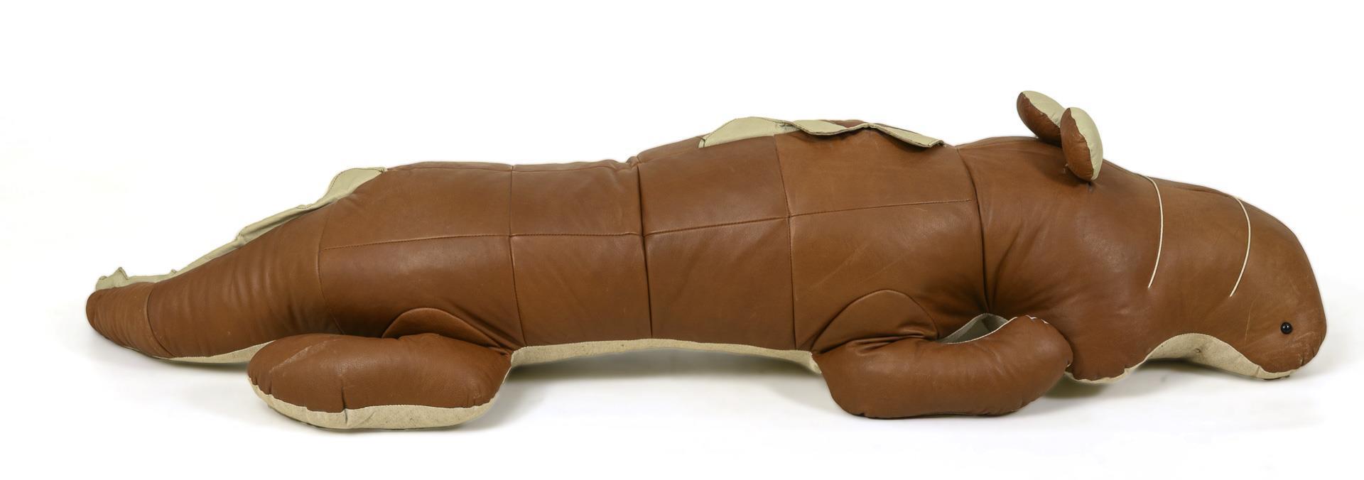 Festgestopftes Reptil mit Reißverschluss am Bauch. Augenniederhaltenähte gelöst, sonst kaum Alters-/Gebrauchsspuren.
