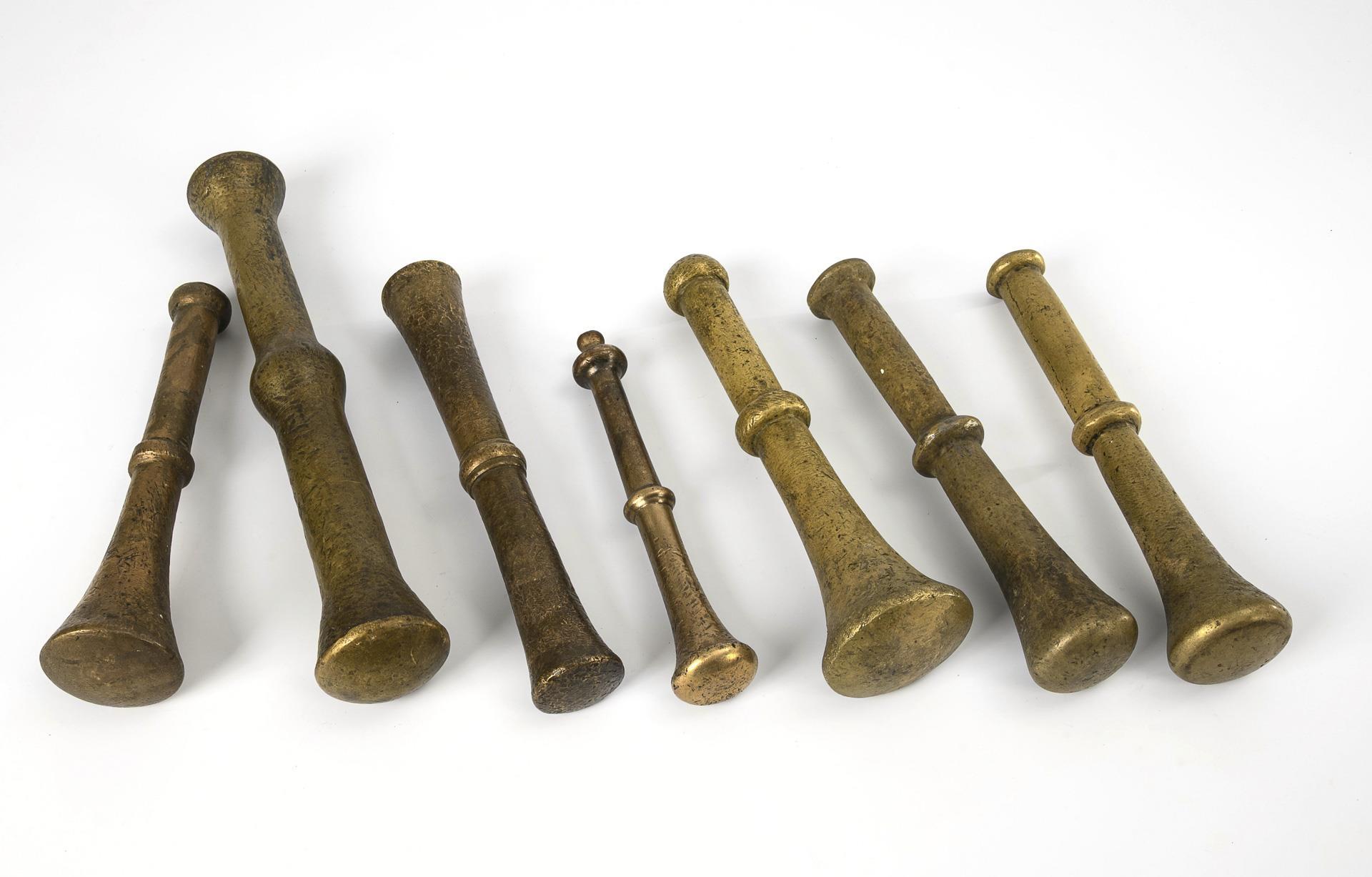 Zumeist beidseitig verwendbare Pistille; je mit Nodus in der Mitte. Je Alters-/Gebrauchsspuren.