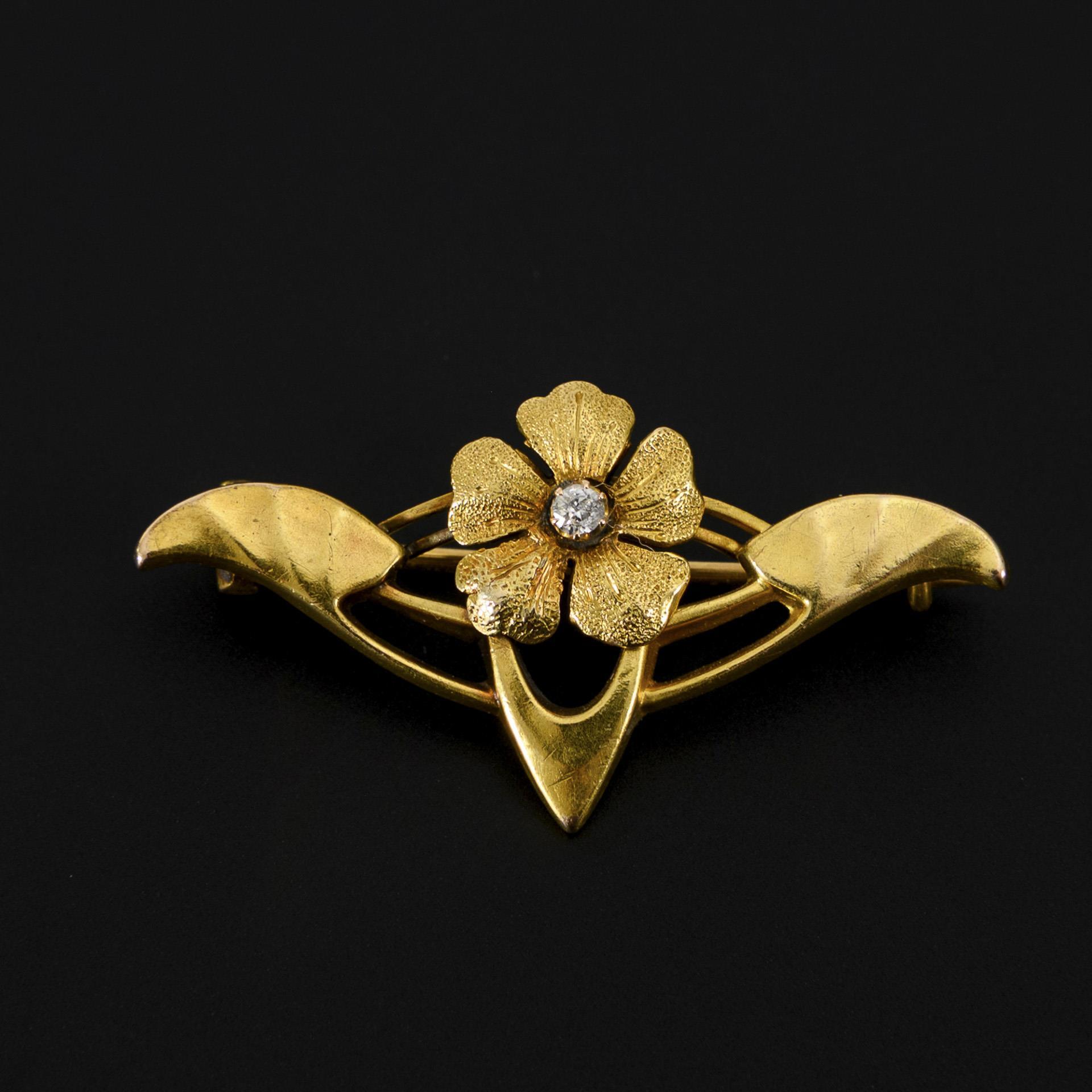Florale Jugendstil-Brosche mit kleinem Brillant.