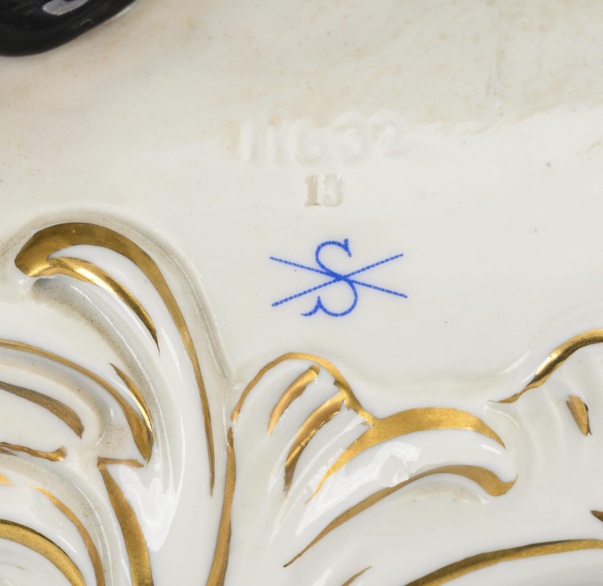 Polychrom bemalt, goldstaffiert. H 25,5 cm, L 37 cm. 4,9 kg.