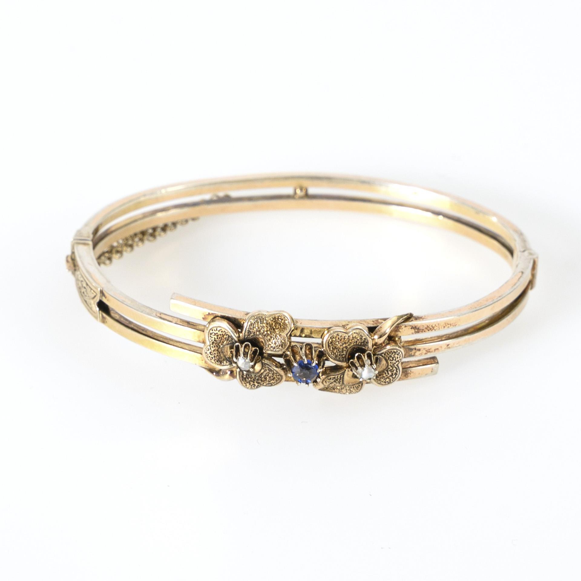 Sie befinden sich hier: Startseite Kategorien Schmuck Historischer Armreif mit blauem Farbstein und zwei halben Saatperlen