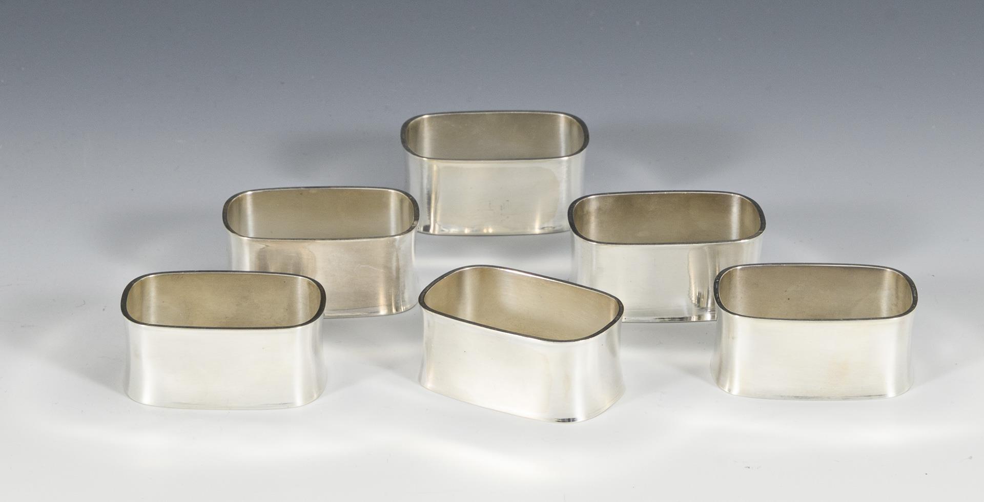 6 silberne Serviettenringe. Bruckmann & Söhne, Heilbronn.