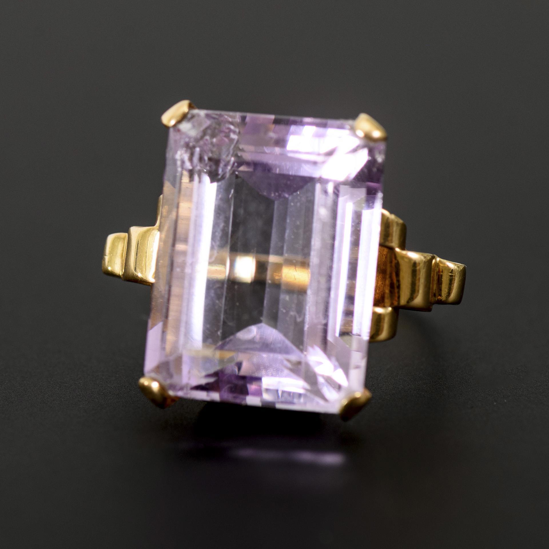 Gelbgold 585 geprüft. Ringgröße 55,5, Amethyst ca. 1,9 x 1,5 cm. 8,1 g.