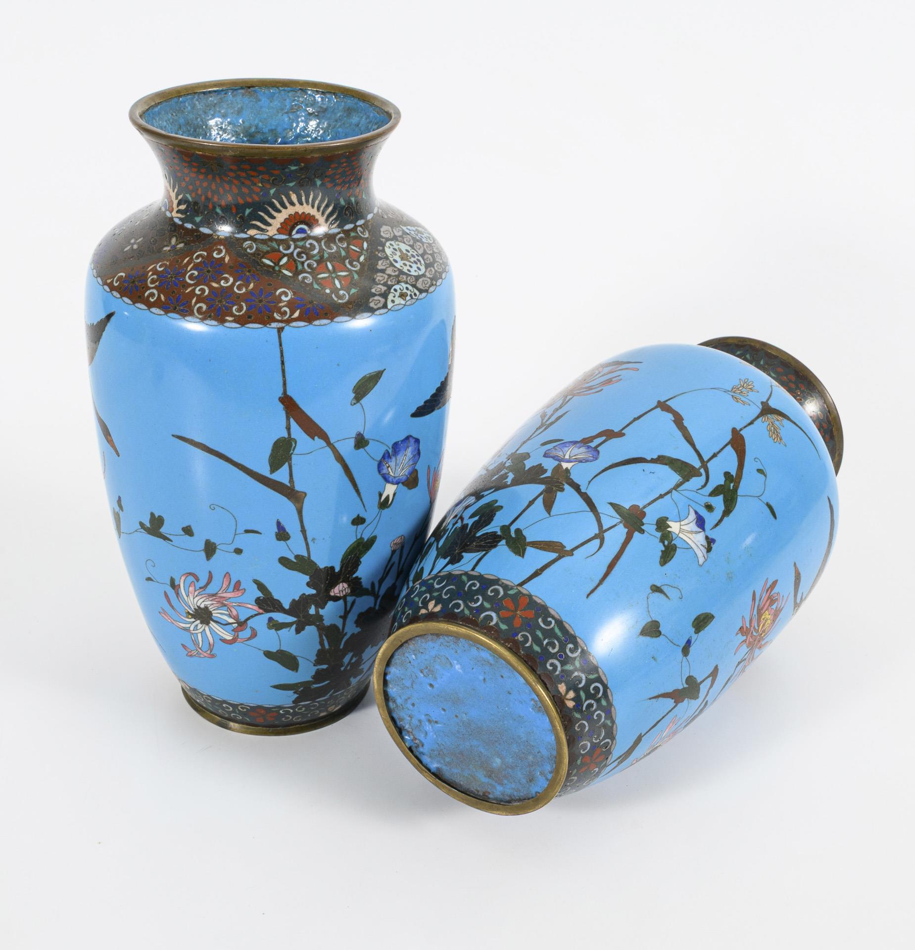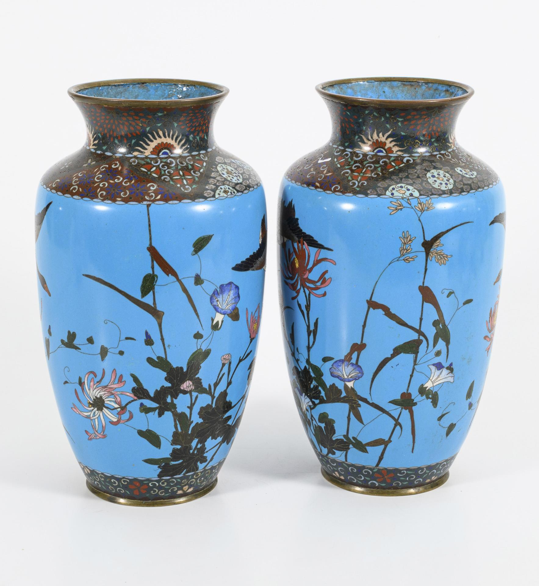 Paar Cloisonné-Vasen mit Vögeln und Blumen.