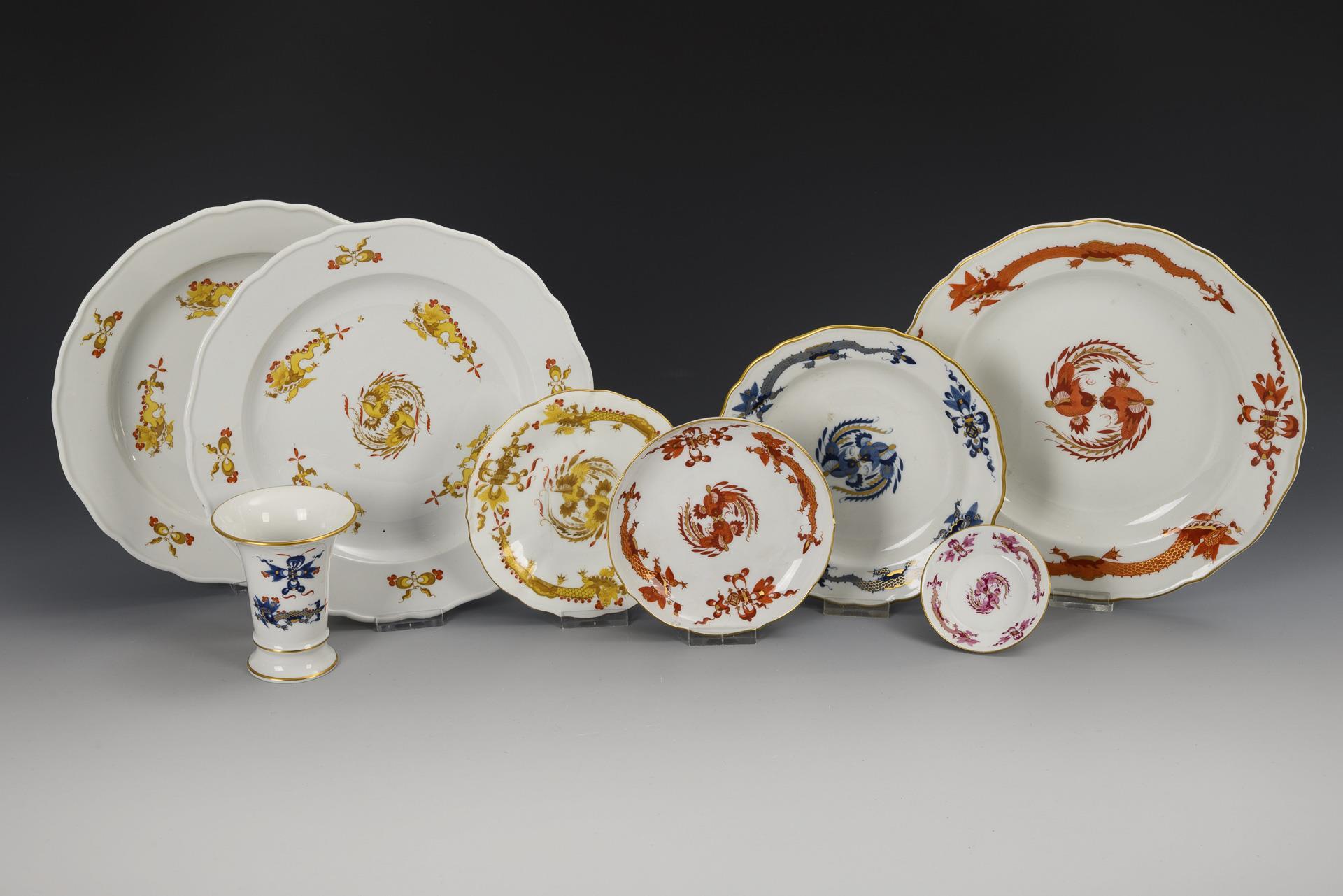 8 Porzellan mit Drachendekor. Meissen.