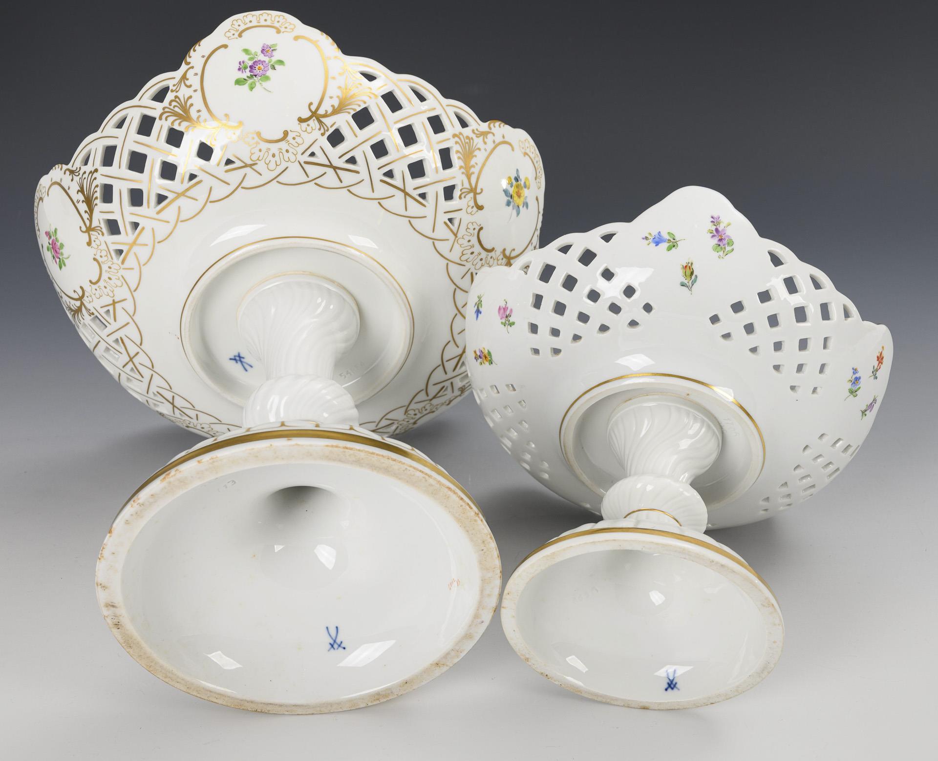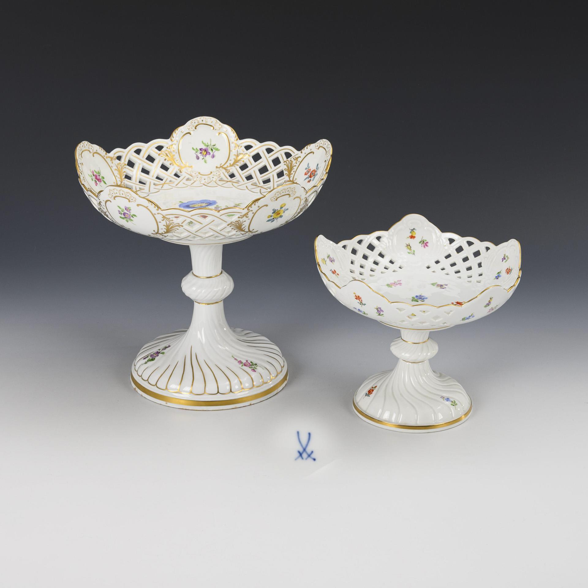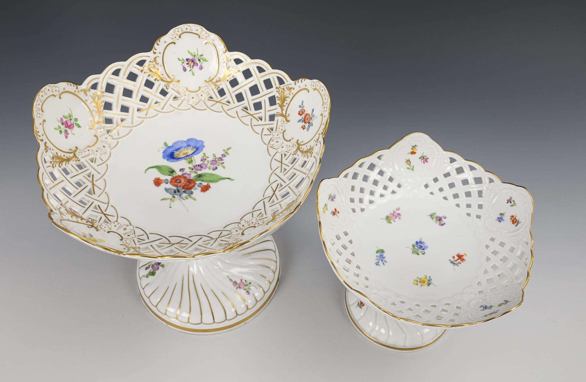 2 Tafelaufsätze mit Blumenmalerei. Meissen.