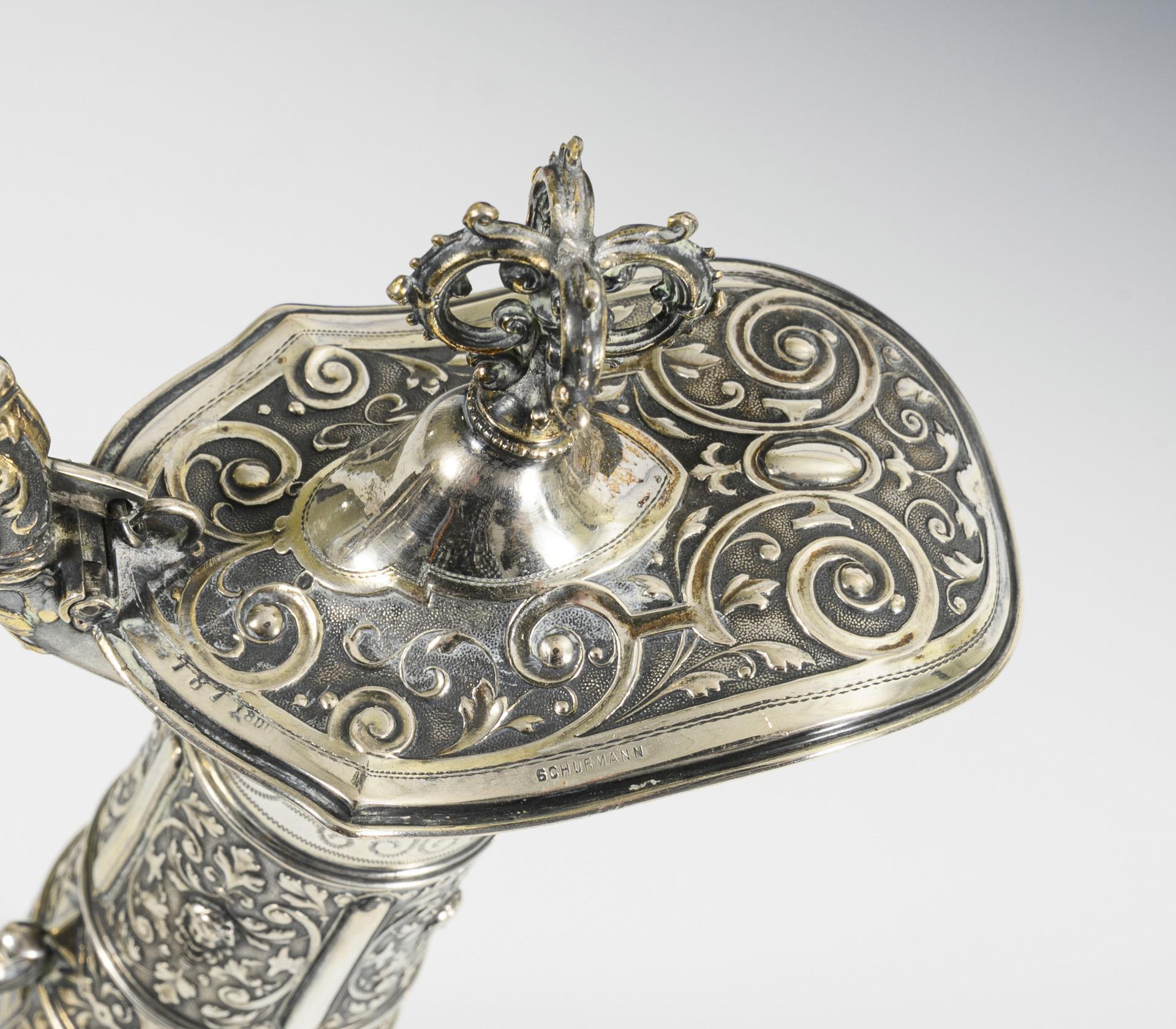 Klarglas, Silber. H 32 cm. 742 g.