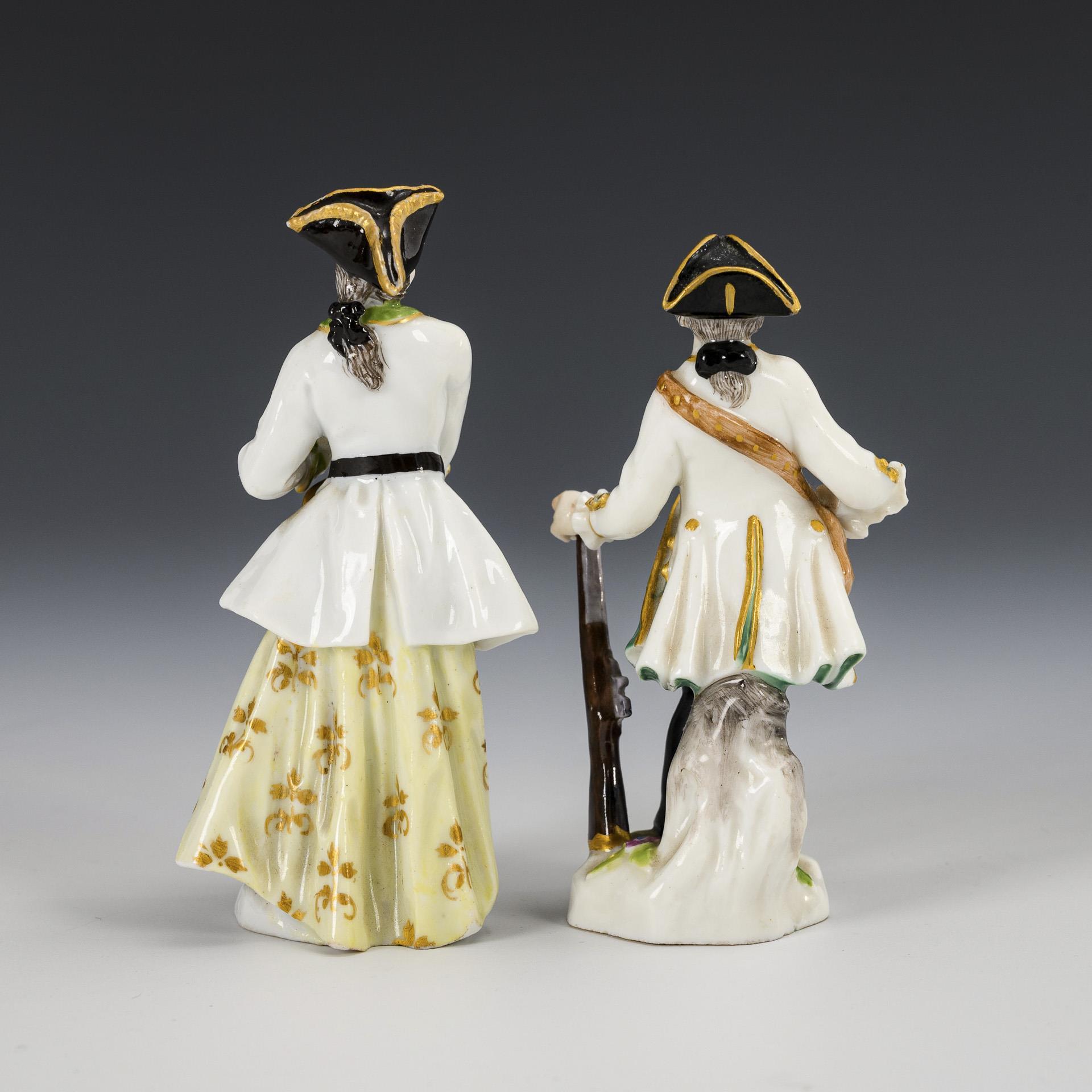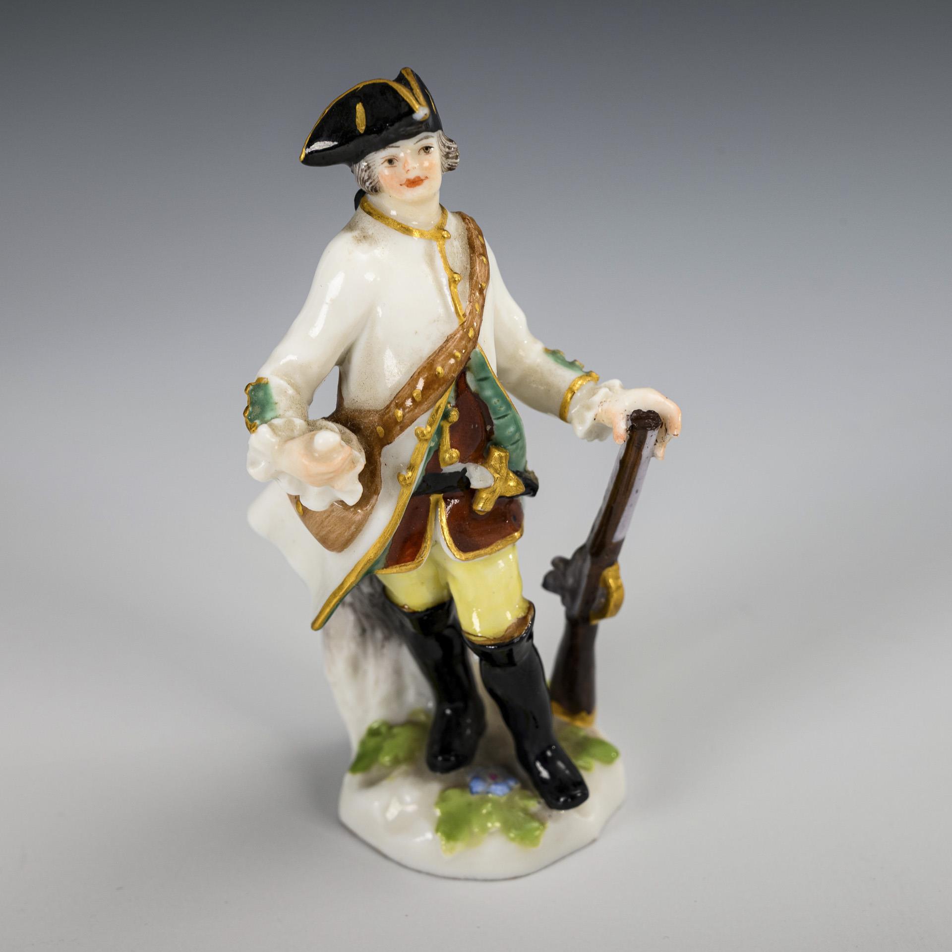 2 Miniaturfiguren: Jäger und Jägerin. Meissen.