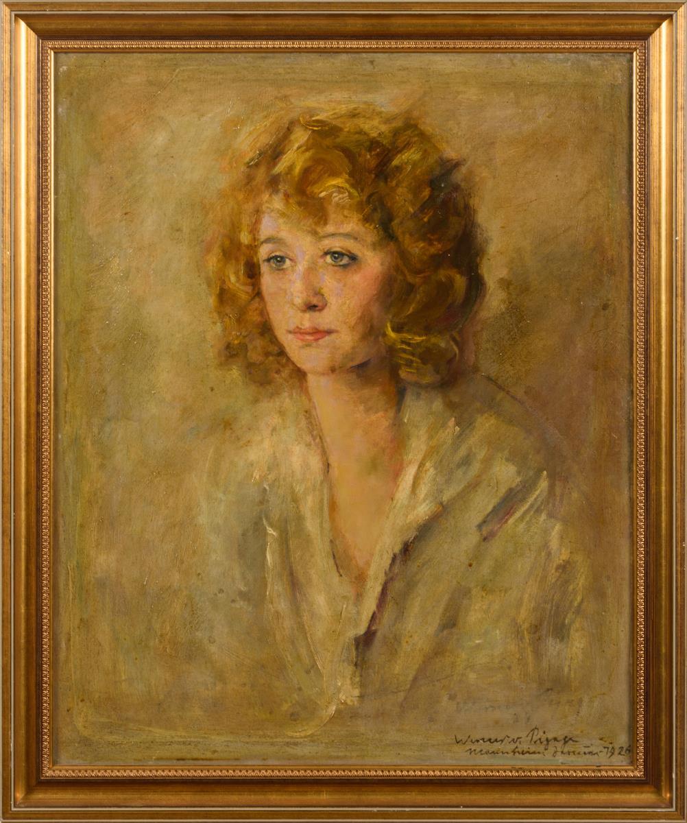 Öl/Leinwand. Rechts unten zweifach signiert mit Zusatz Mannheim und wohl dem Namen der Dargestellten, "Jasmin". Datiert: 1926.