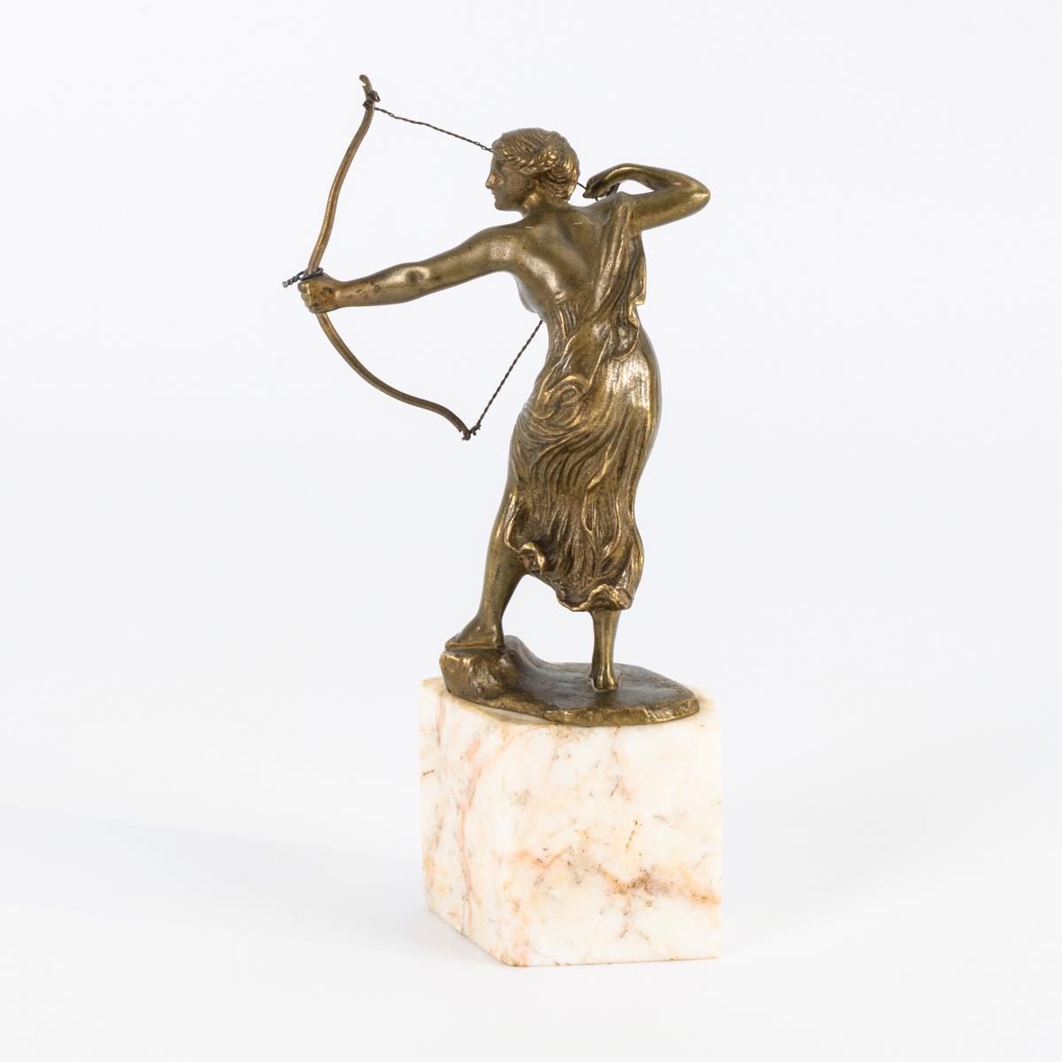In Anlehnung an die Antike gestaltete Diana oder Amazone. Berieben, Pfeil fehlt.