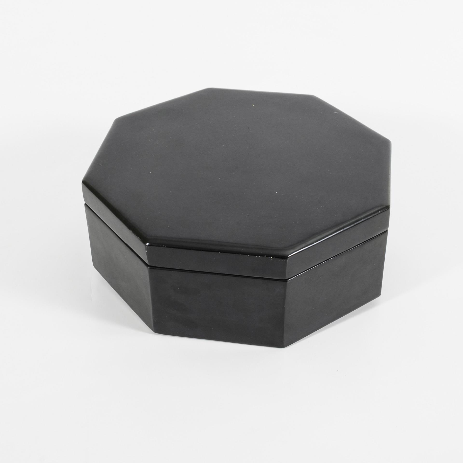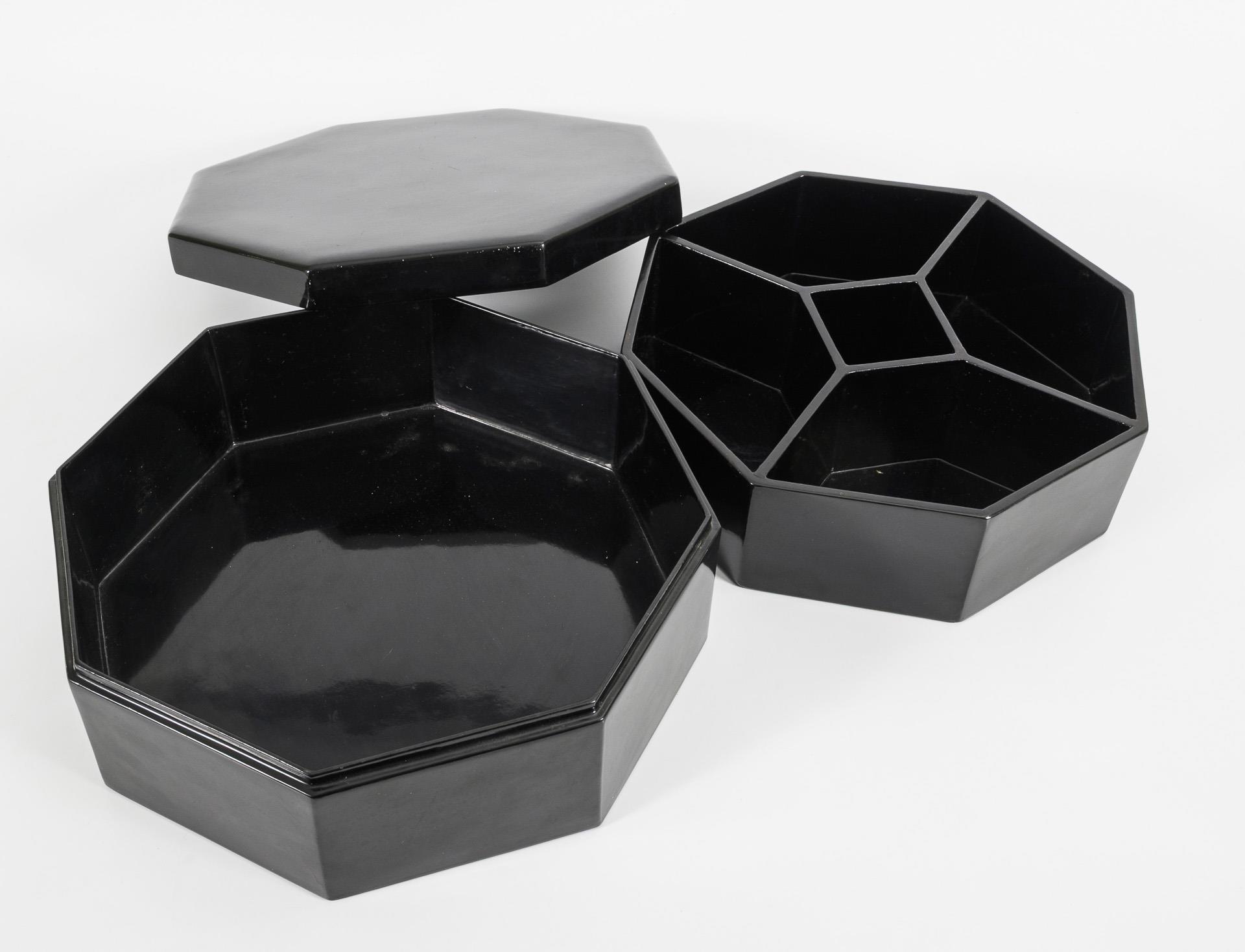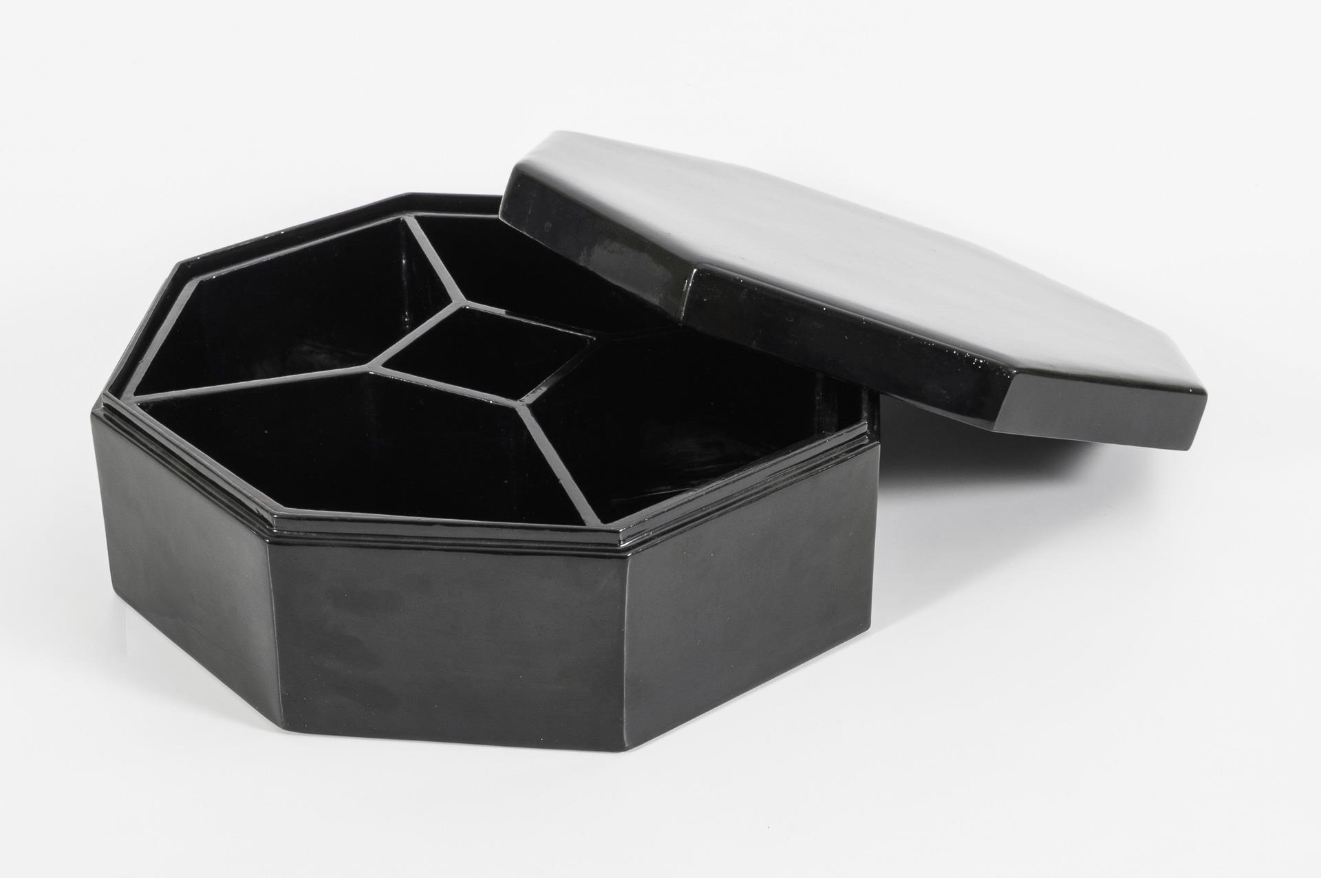 Korpus und 5-teiliger Einsatz schwarz lackiert. Am Boden wenige Kratzer.
