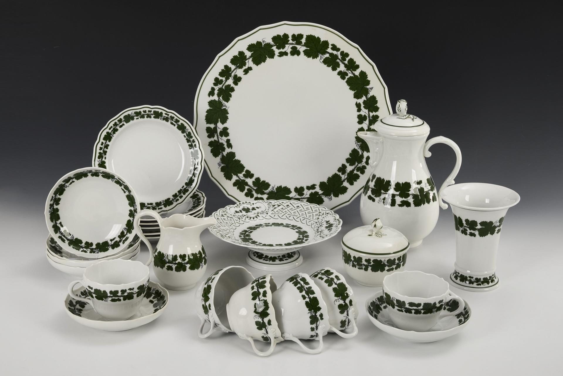 Kaffeeservice mit Weinlaubdekor. Meissen.