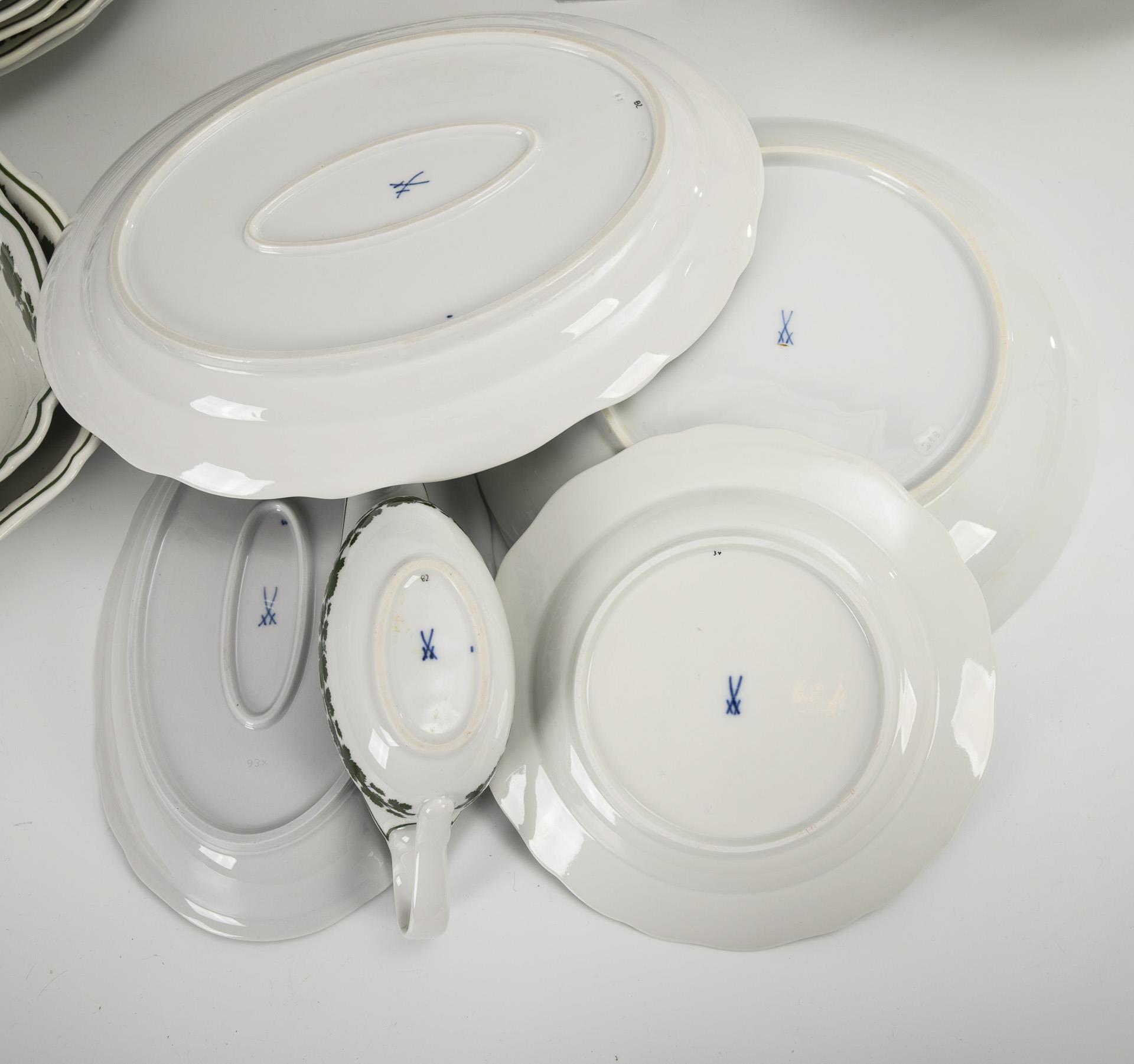 31 Teile eines Speiseservice mit Weinlaubdekor. Meissen.
