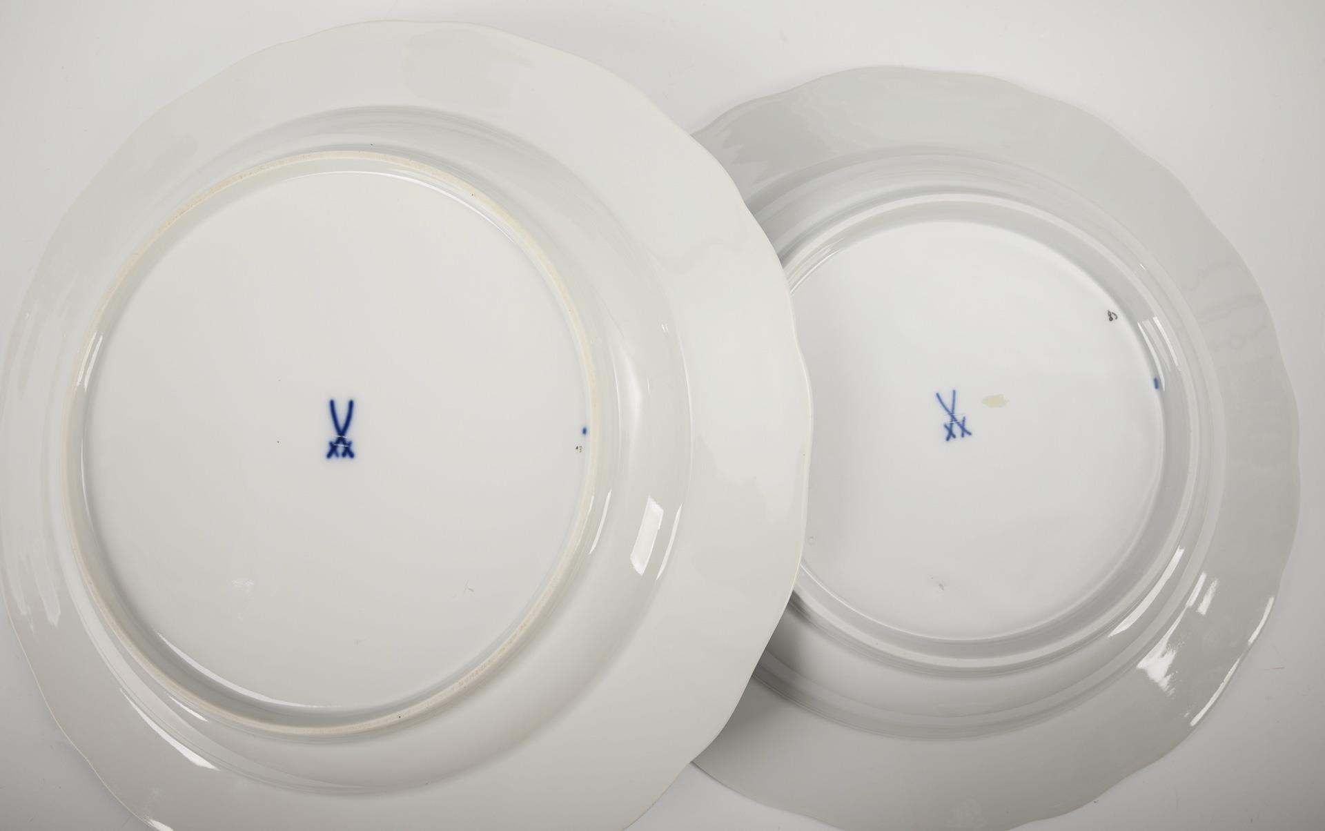 6 + 6 Teller mit Weinlaubdekor. Meissen.