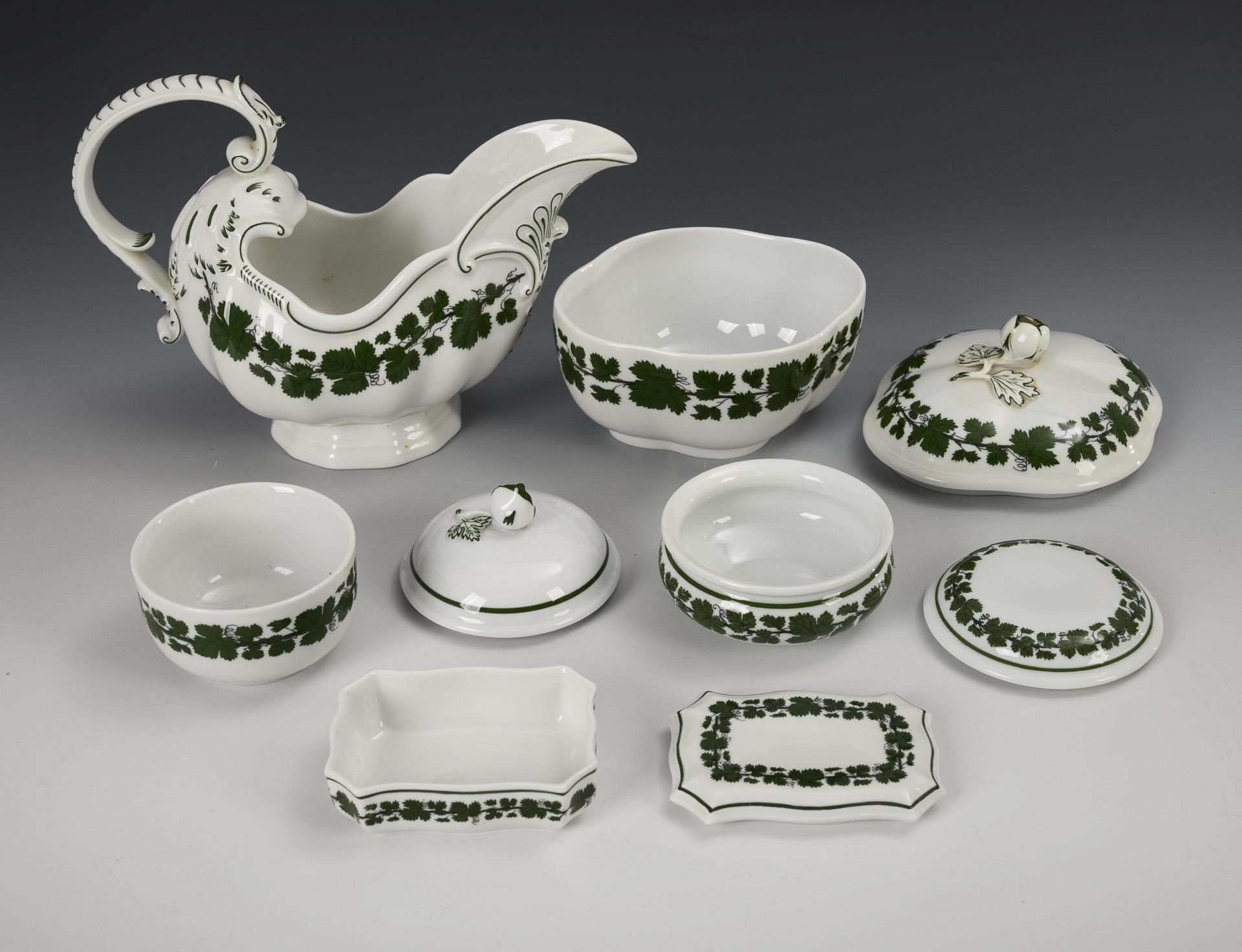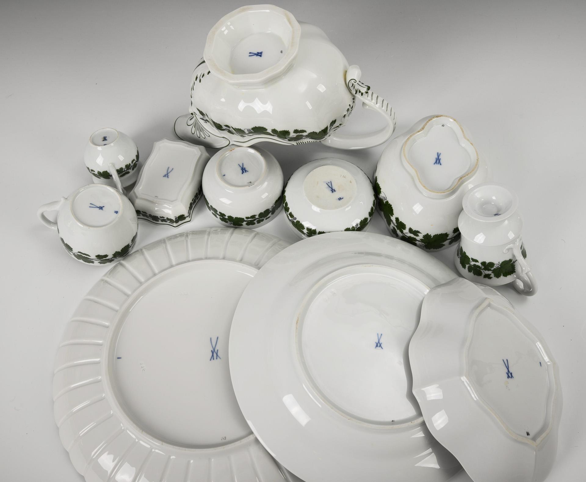 11 Porzellane mit Weinlaubdekor. Meissen.